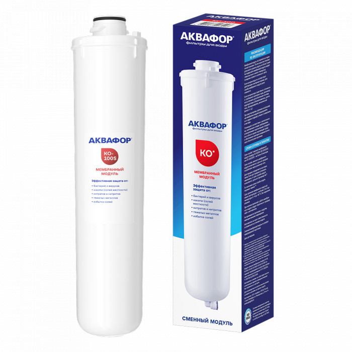 Используется в стационарных обратноосмотических системах Аквафор Осмо-Кристалл и в серии DWM. Под давлением через мембрану способна пройти только молекулы воды. Любые примеси, в том числе бактерии, вирусы, нитриты, нитраты, остатки антибиотиков, а также соли жесткости, - проходят мимо и сливаются в дренаж. Удобная замена мембранного блока - аналогично другим модулям, отсоединяется нажатием кнопки на коллекторе, новый блок вставляется в гнездо с поворотом до клика.