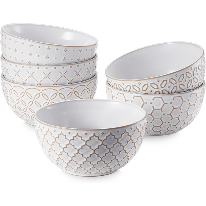 Набор пиал от Dowan сочетает в себе универсальность, элегантный дизайн и практичность. В комплект входят шесть керамических мисок объемом 300 мл, идеальных для подачи супов, хлопьев, салатов, закусок, десертов, овсянки или мороженого. Благодаря приподнятому основанию миски обеспечивают удобный захват и устойчивость.