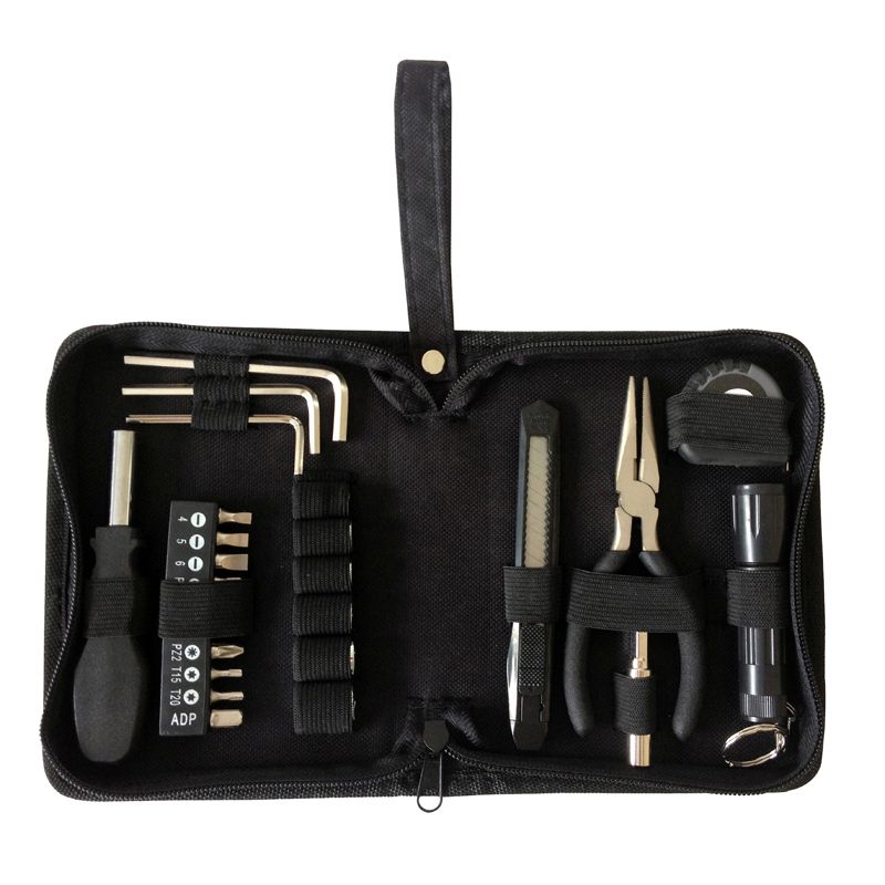 НАБОР ИНСТРУМЕНТОВ STINGER, 26 ПРЕДМЕТОВНабор инструментов STINGER W0109 на 26 предметов придётся по вкусу всем тем, кто привык всё делать своими руками. С таким комплектом можно без труда произвести практически любой мелкий бытовой ремонт. Все предметы надёжно закреплены в прочном нейлоновом чехле. Этот компактный набор можно хранить в тумбочке, на полке, в шкафу или бардачке машины. Стальные рабочие части инструментов отличаются повышенной прочностью, рукоятки выполнены из износостойкого карбона. Для удобства чехол дополнен матерчатой ручкой для переноски.В КОМПЛЕКТЕ:1. Рукоятка отвёрточная для бит - 1 шт.2. Бита - 9 шт.3. Адаптер для шестигранных головок - 1 шт.4. Нож канцелярский – 1 шт.5. Удлинитель для шестигранных головок – 1 шт.6. Ключ шестигранный – 3 шт.7. Головка шестигранная – 6 шт.8. Длинногубцы – 1 шт.9. Рулетка измерительная (1 м) – 1 шт.10. Фонарик – 1 шт.11. Чехол на молнии (плотность 600Д) – 1 шт.