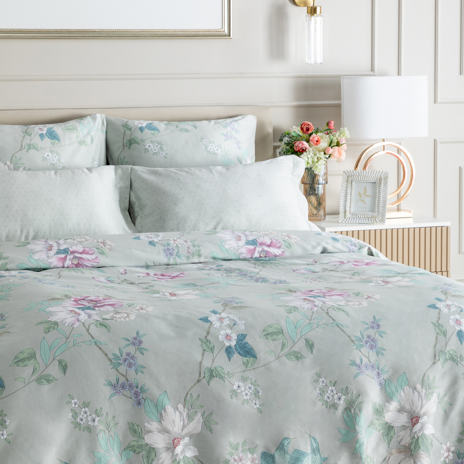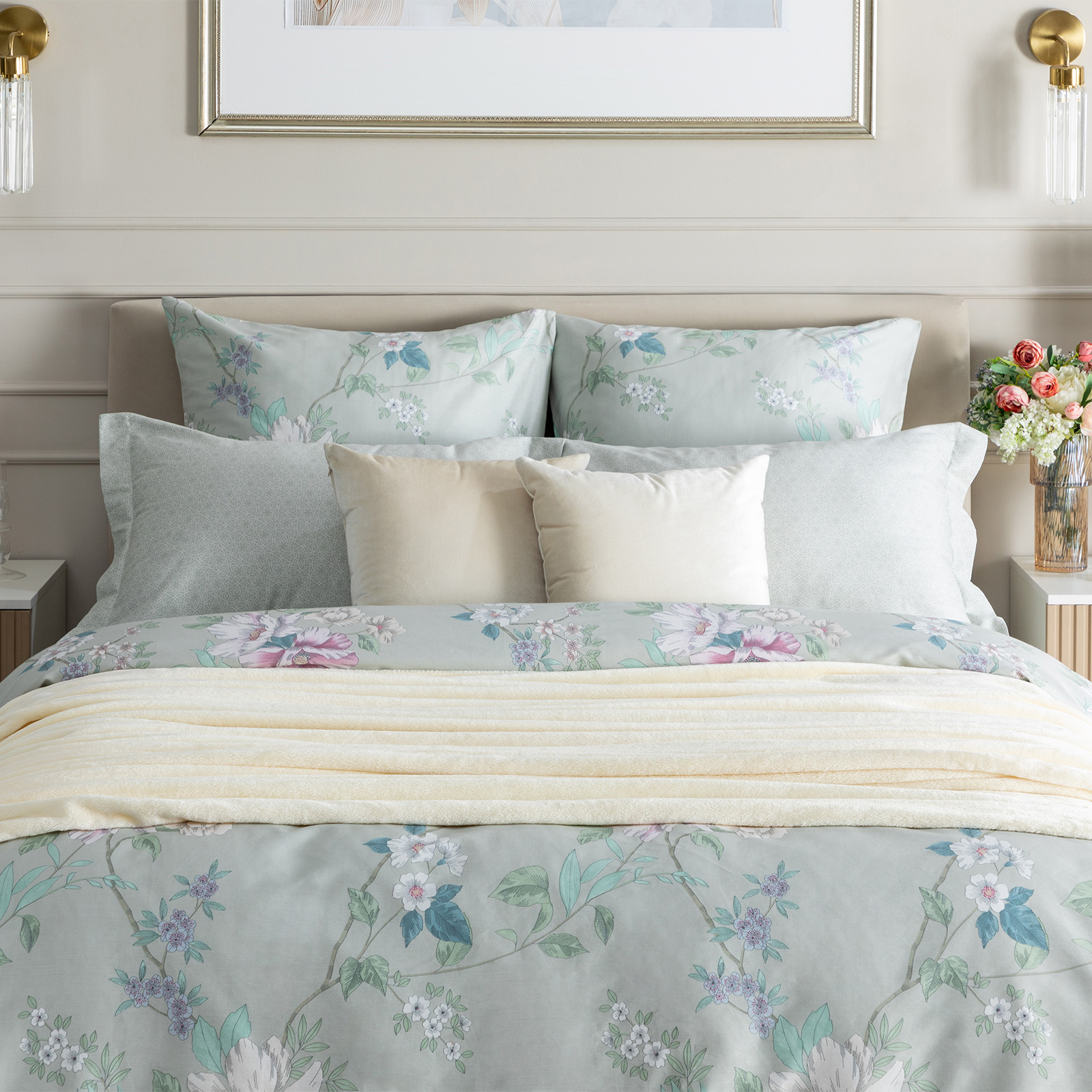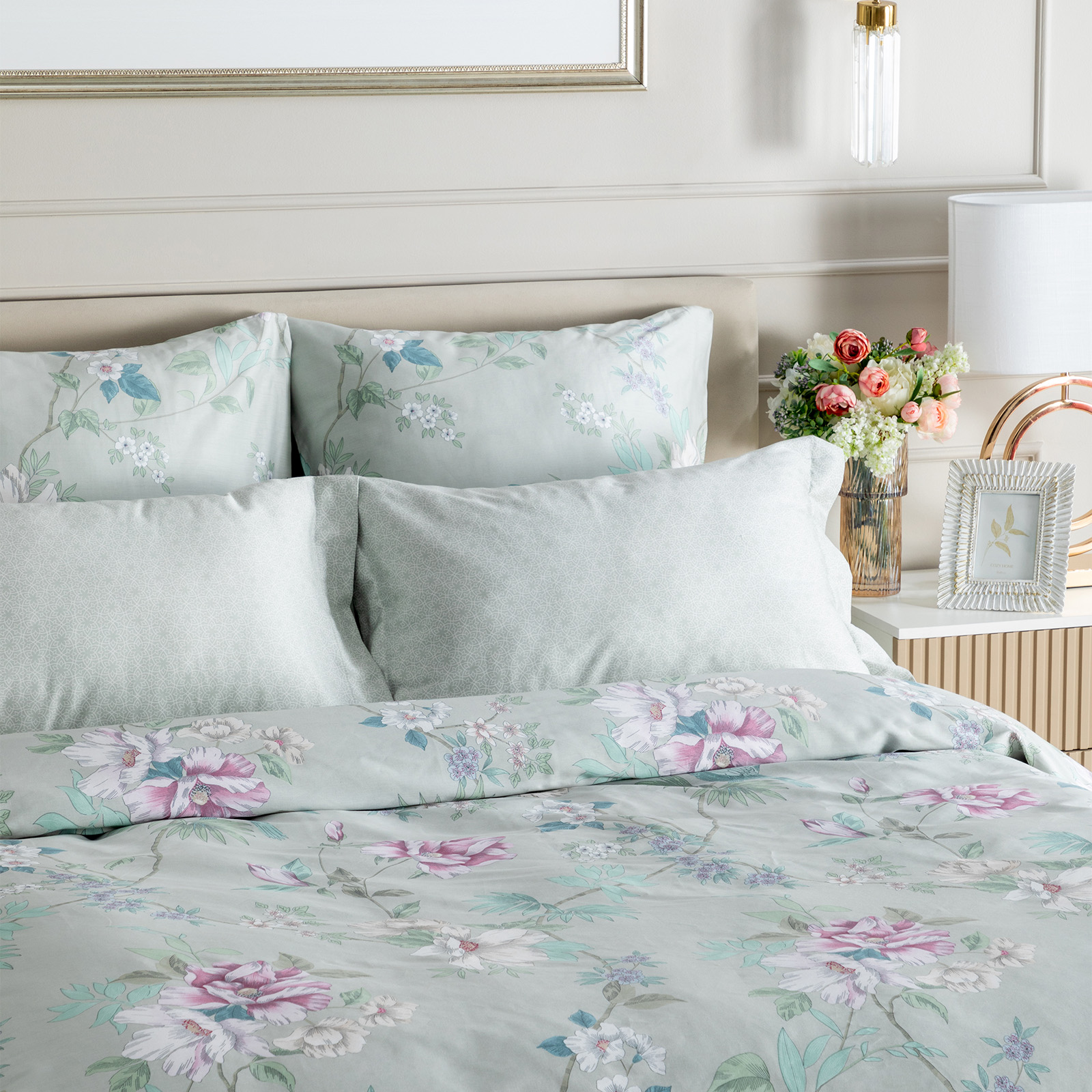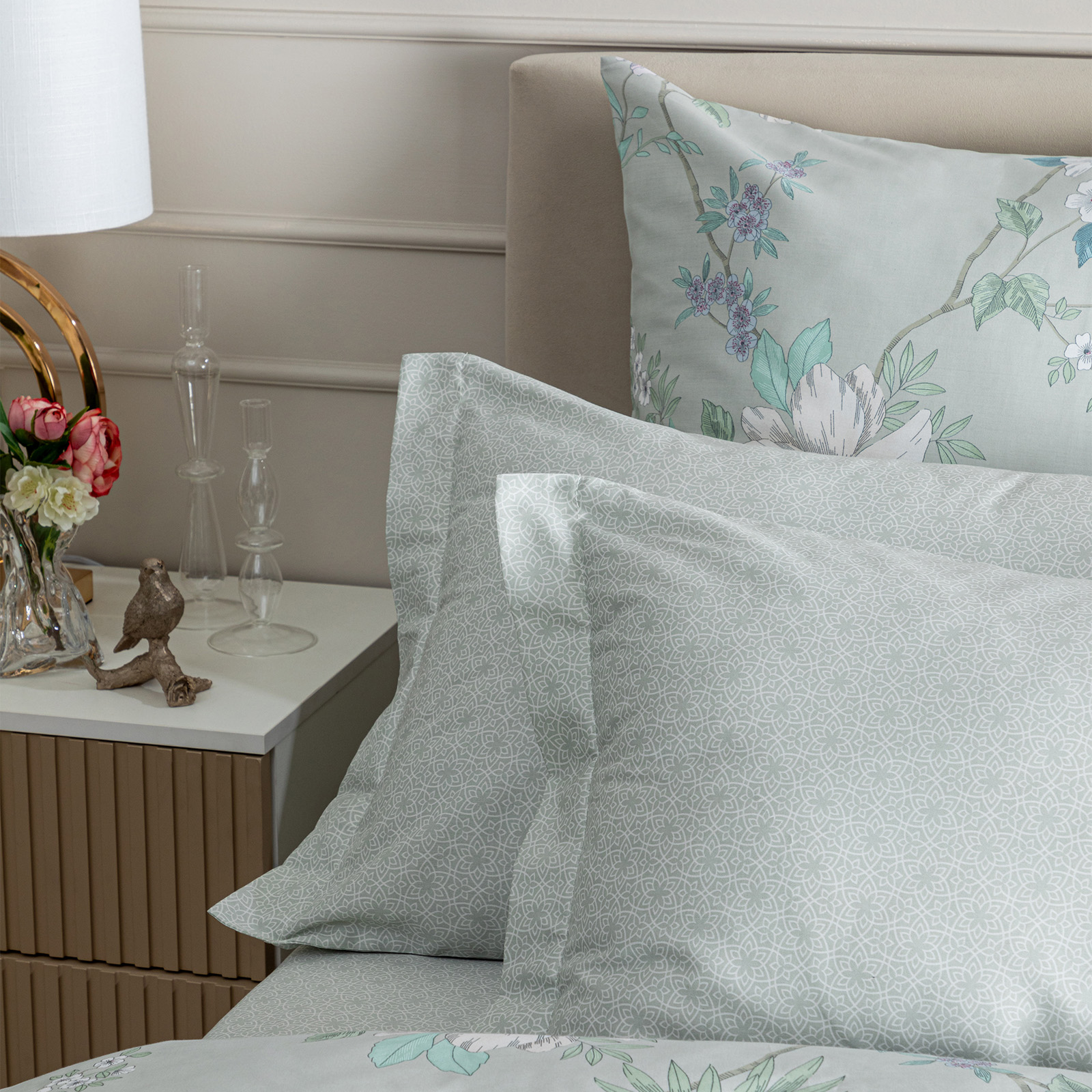 Постельное белье Smoke green & Cream