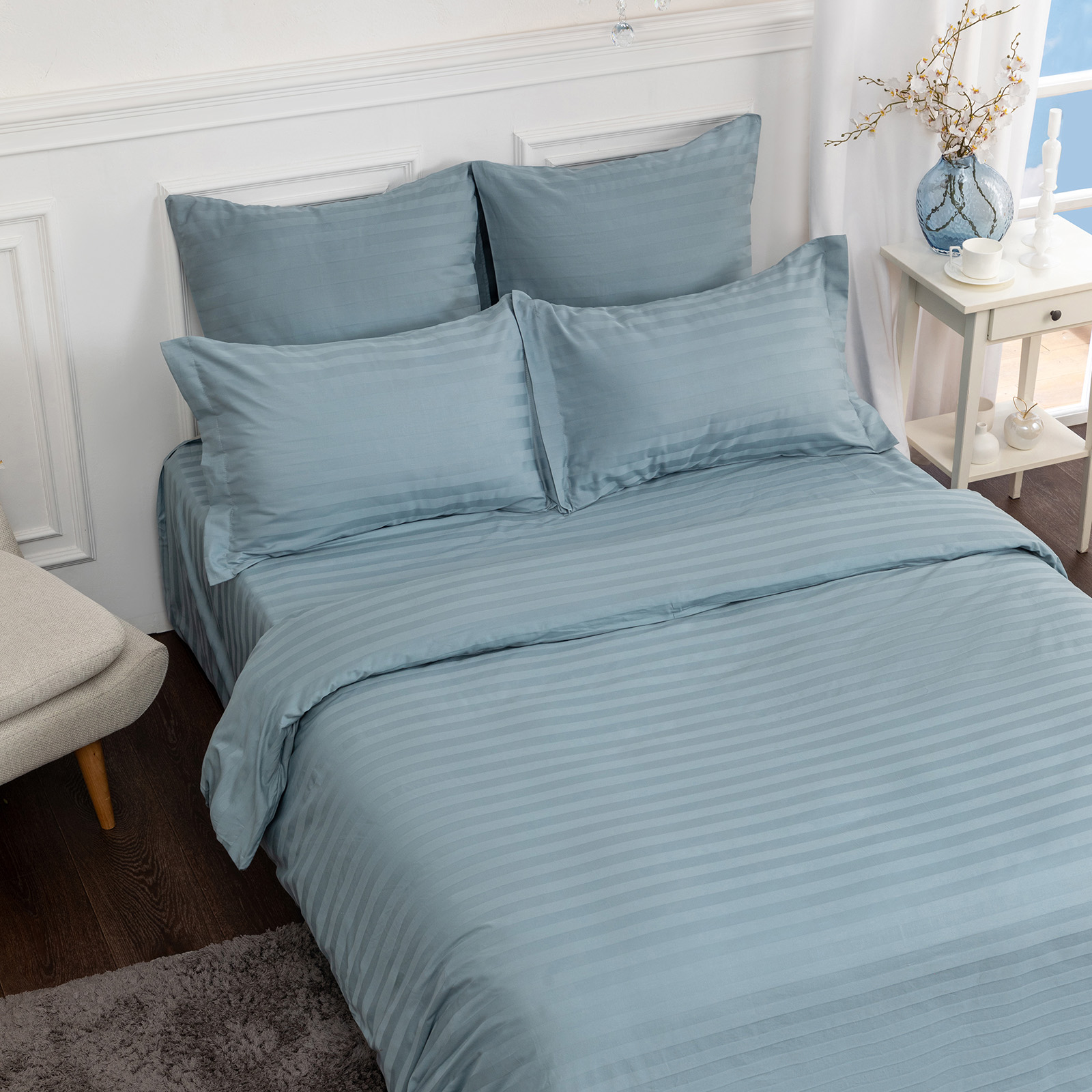 Постельное белье Smoke green & Cream
