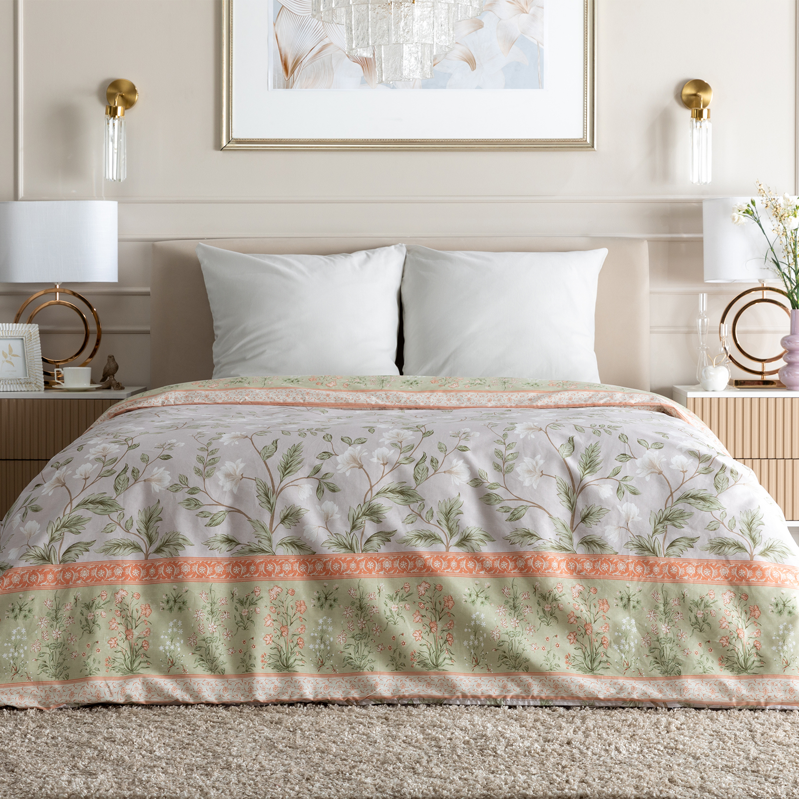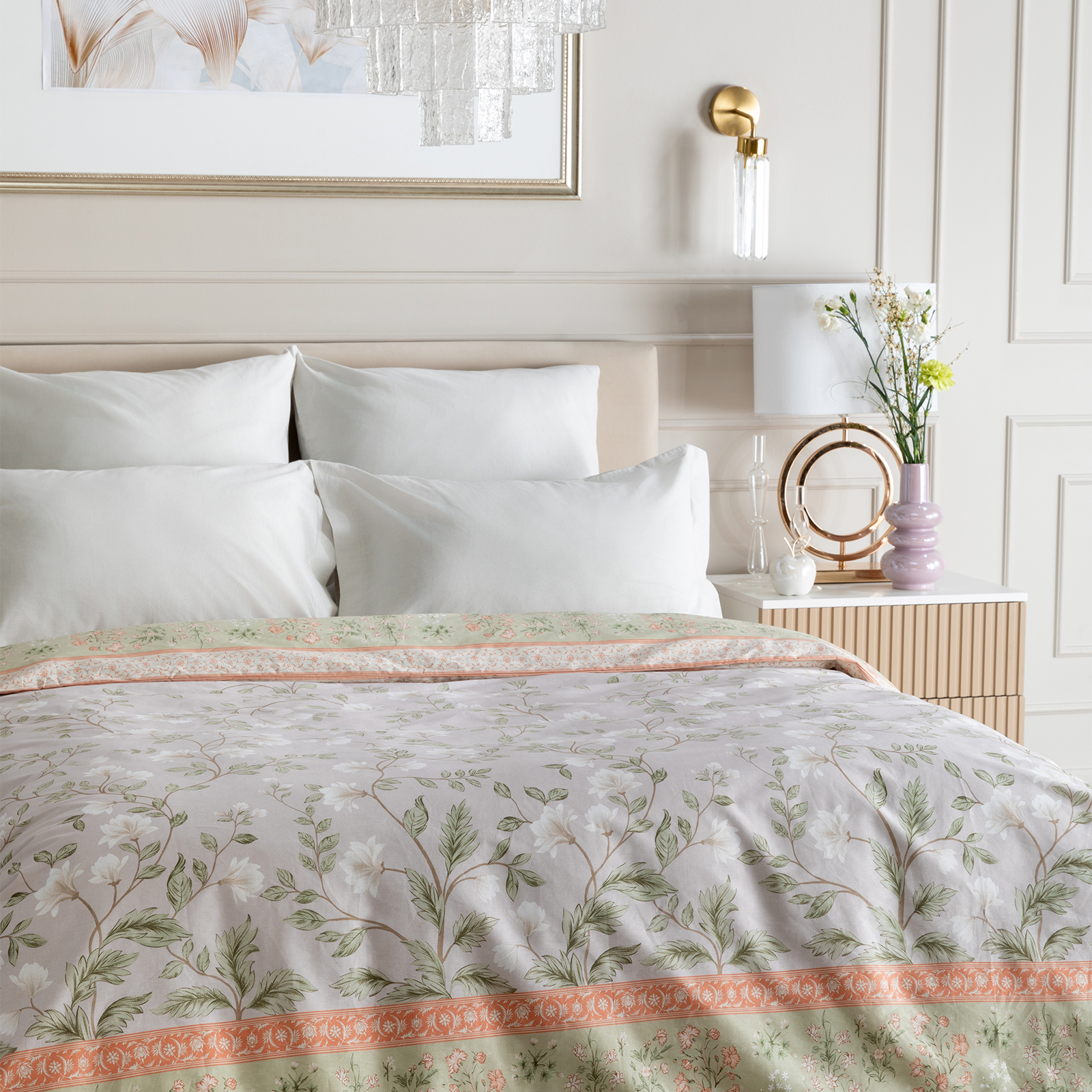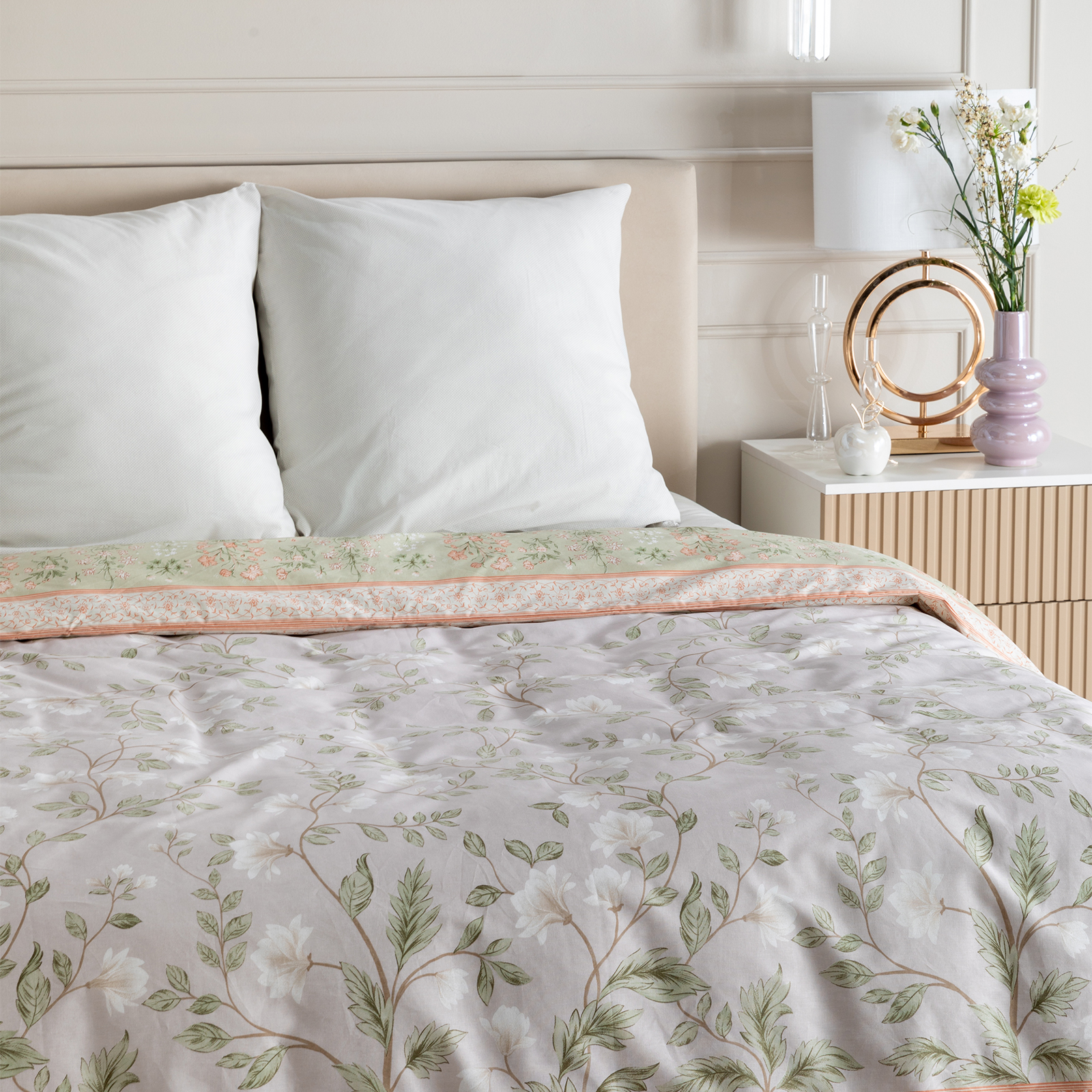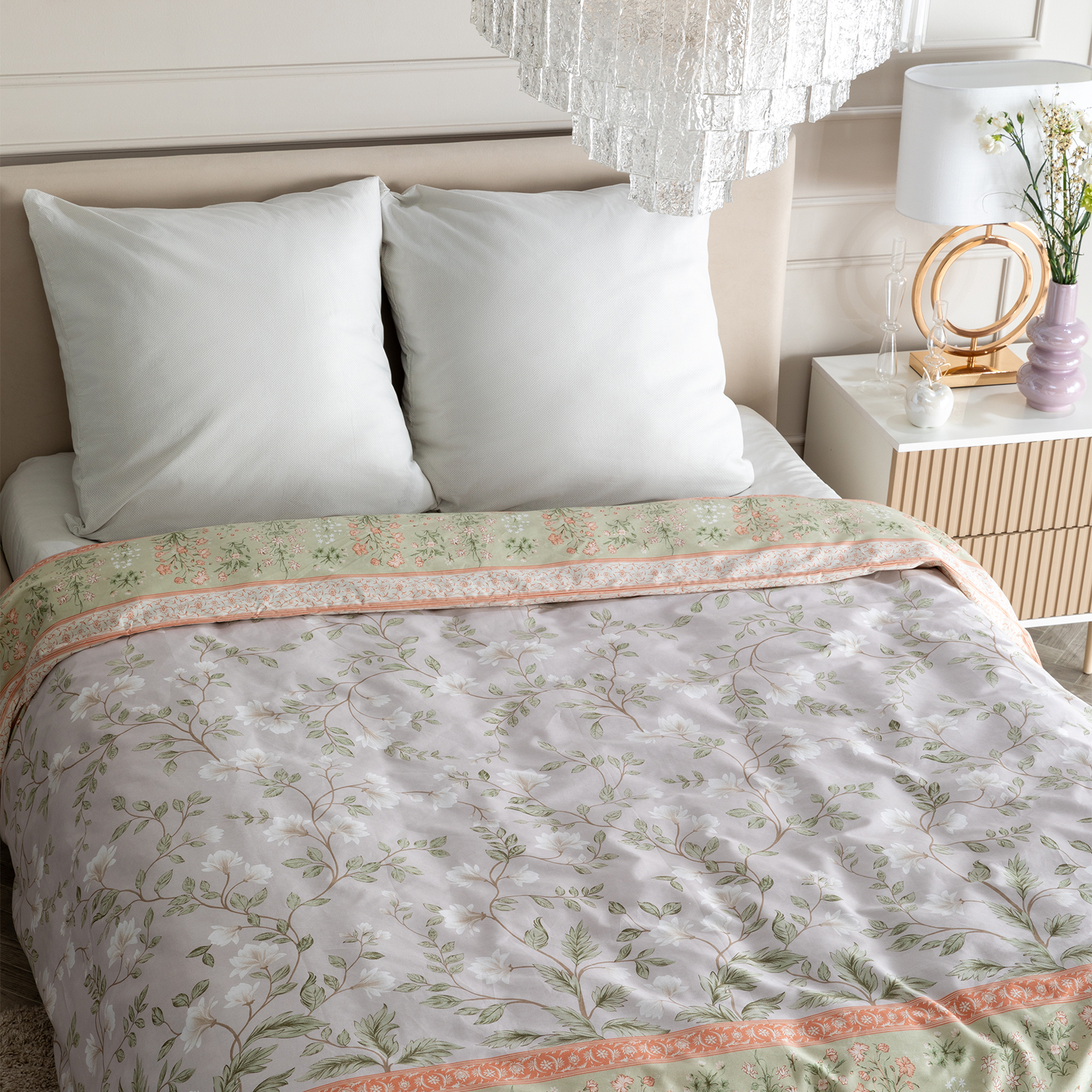 Постельное белье Smoke green & Cream