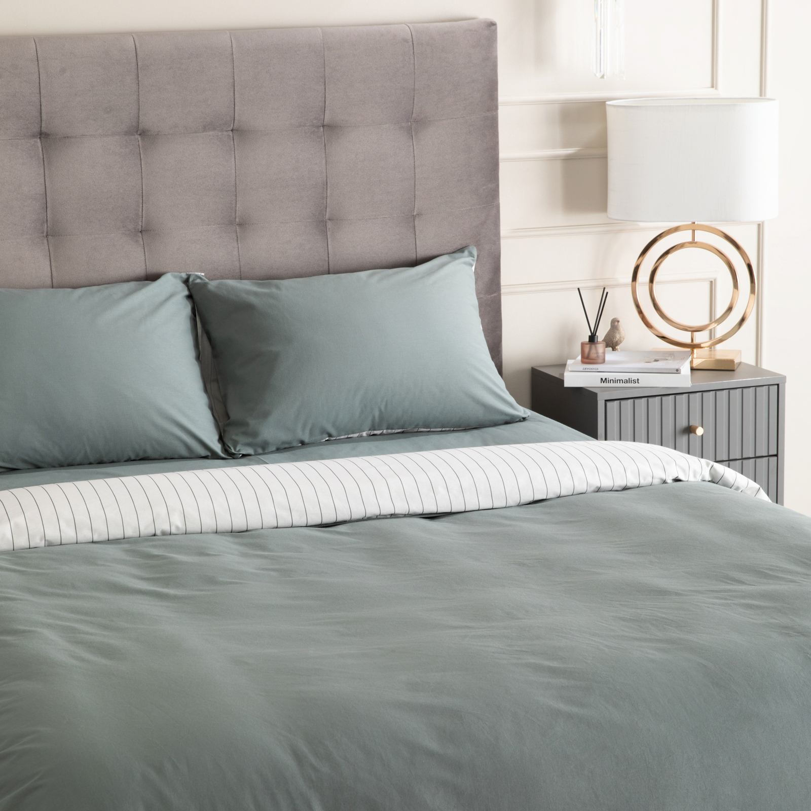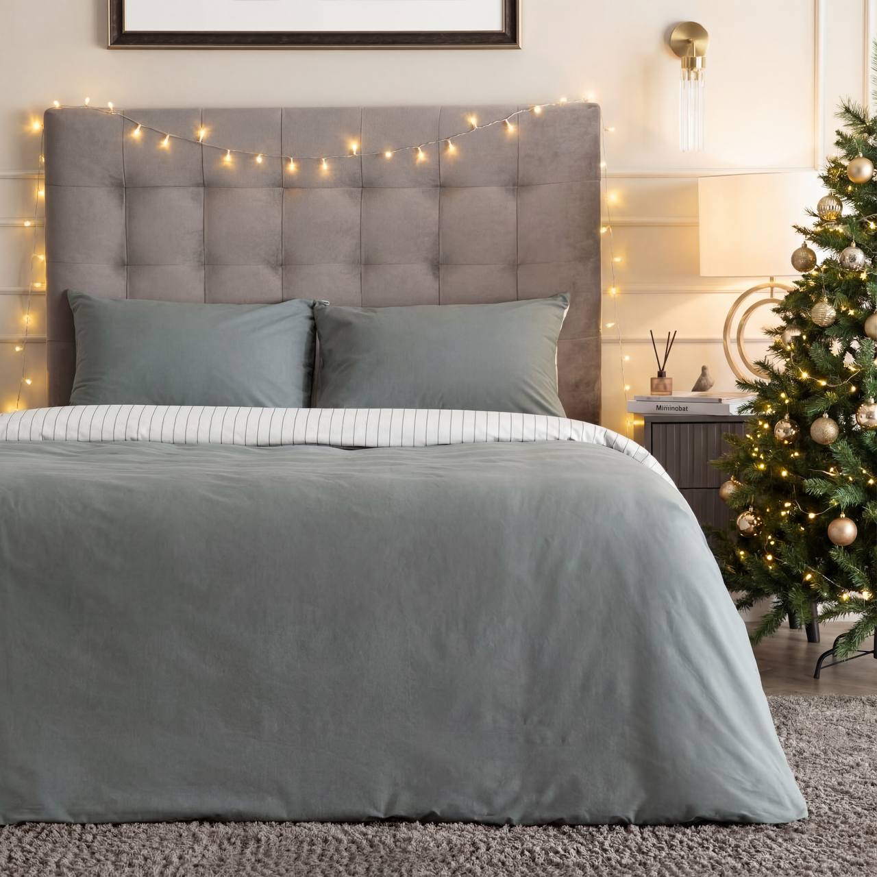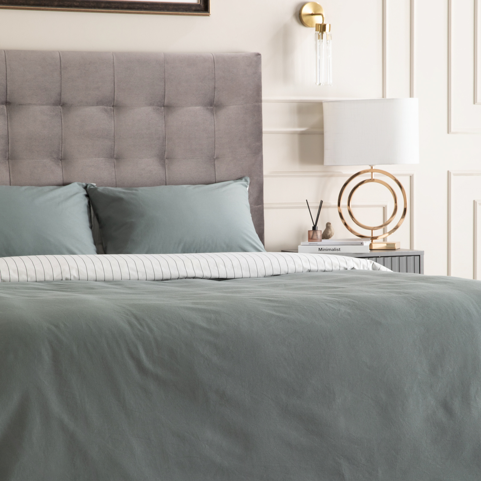Постельное белье Smoke green & Cream
