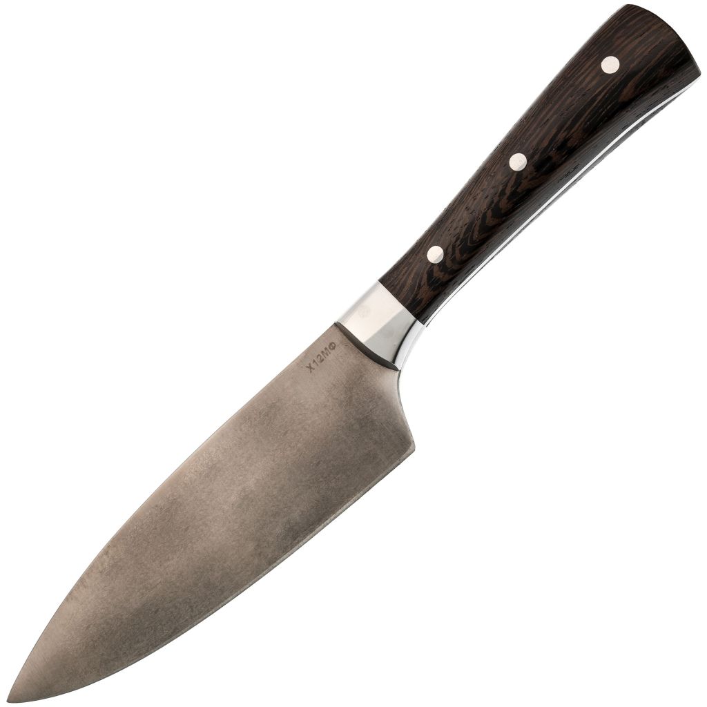 Сталь Х12МФ - известна своей отличной стойкостью к износу и высокой твердостью. Это делает клинок долгосрочным спутником в кухне, который сохраняет свою остроту долгое время.