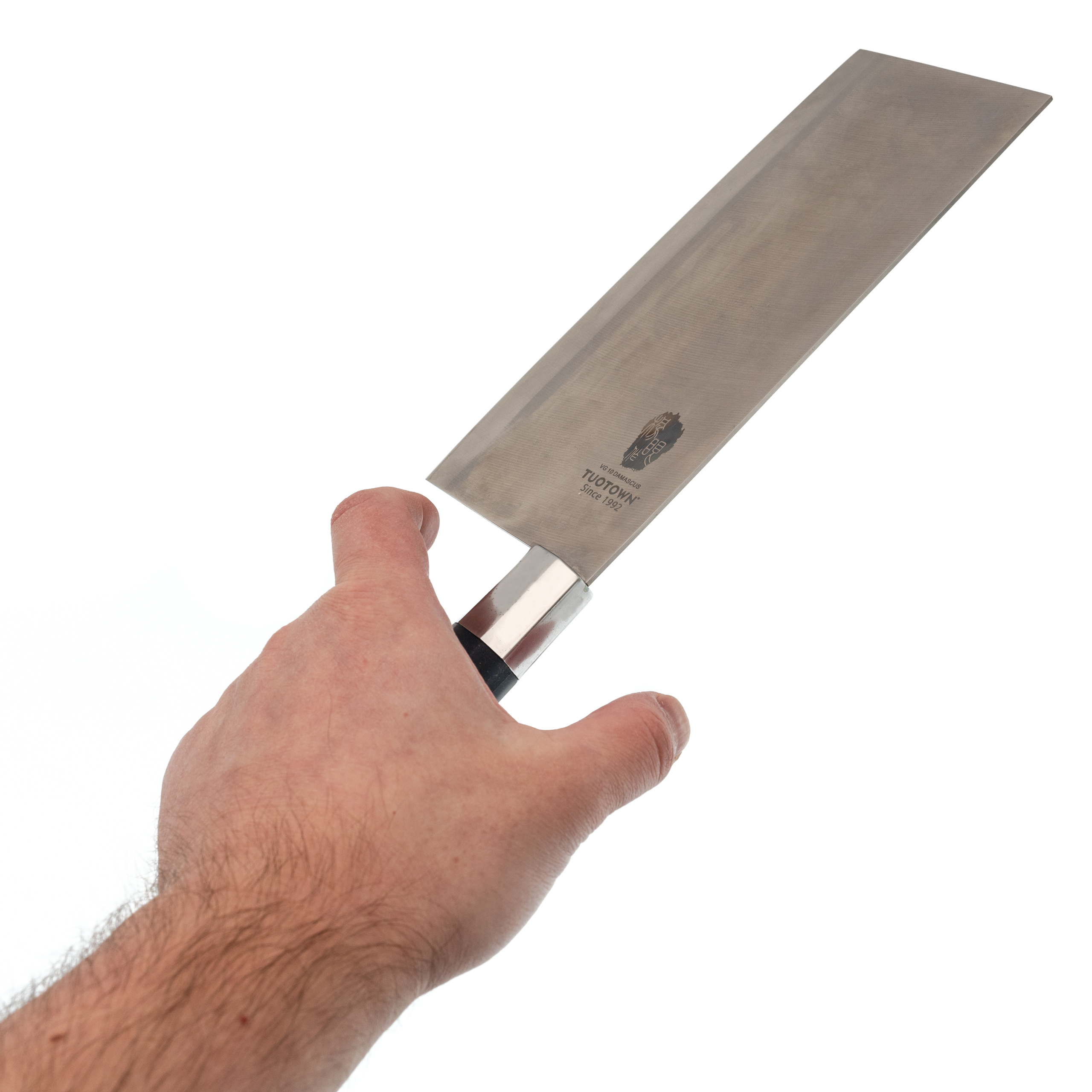 Рукоять круглая, без сложной формы и острых граней. За счёт этого нож не утомляет руку даже при долгой шинковке. Баланс смещён к клинку, что помогает контролировать движение и снижает нагрузку на кисть.