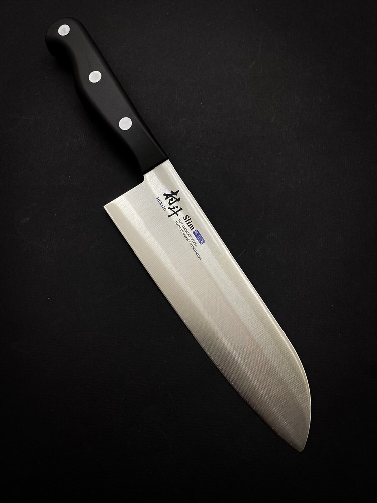 Сантоку - традиционная японская форма шеф-ножа. Ножи Сантоку предназначены для работы с крупными продуктами, такими как рыба, мясо, а также некоторые овощи. Они имеют широкие и относительно короткие клинки, что обеспечивает контроль и маневренность при работе с крупными кусками продуктов.Клинок выполнен из нержавеющей стали, легированной молибденом и ванадием. Такая сталь имеет ряд преимуществ: она не поддается коррозии, легко поддается заточке и имеет относительно низкую стоимость. Хотя сталь и не удерживает заточку так долго, как более дорогие сплавы, отличная режущая геометрия, характерная для японских ножей, обеспечивает эффективную работу с продуктами.Рукоять изготовлена из нейлона - легкого и прочного материала, который также обладает водостойкостью и устойчивостью к перепадам температуры. Сантоку от Murato Slim станет отличным выбором для тех, кто ценит традиционную японскую форму и ищет эффективный инструмент для работы с крупными продуктами по доступной цене.