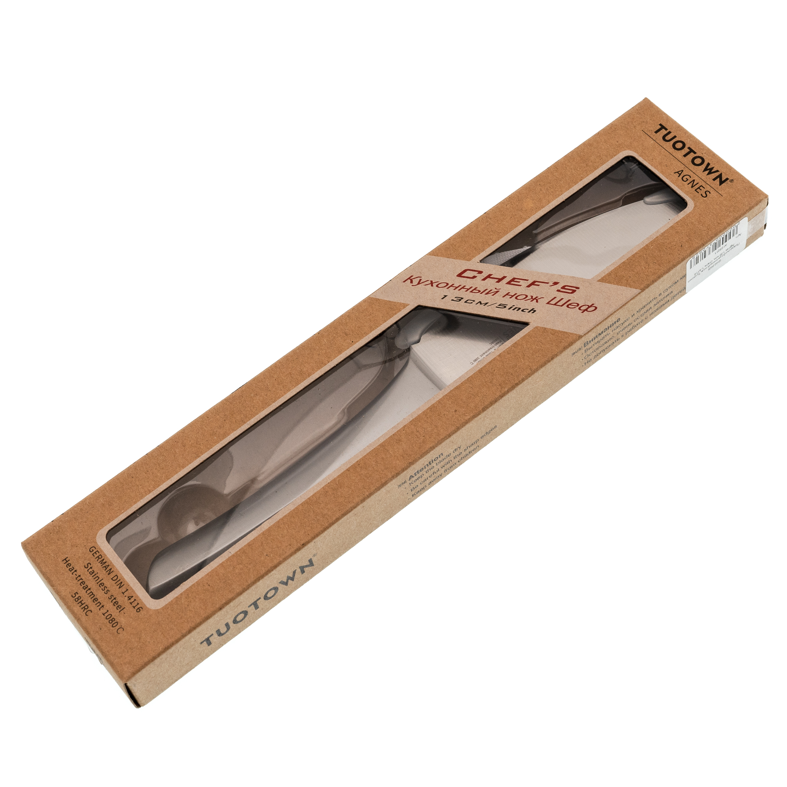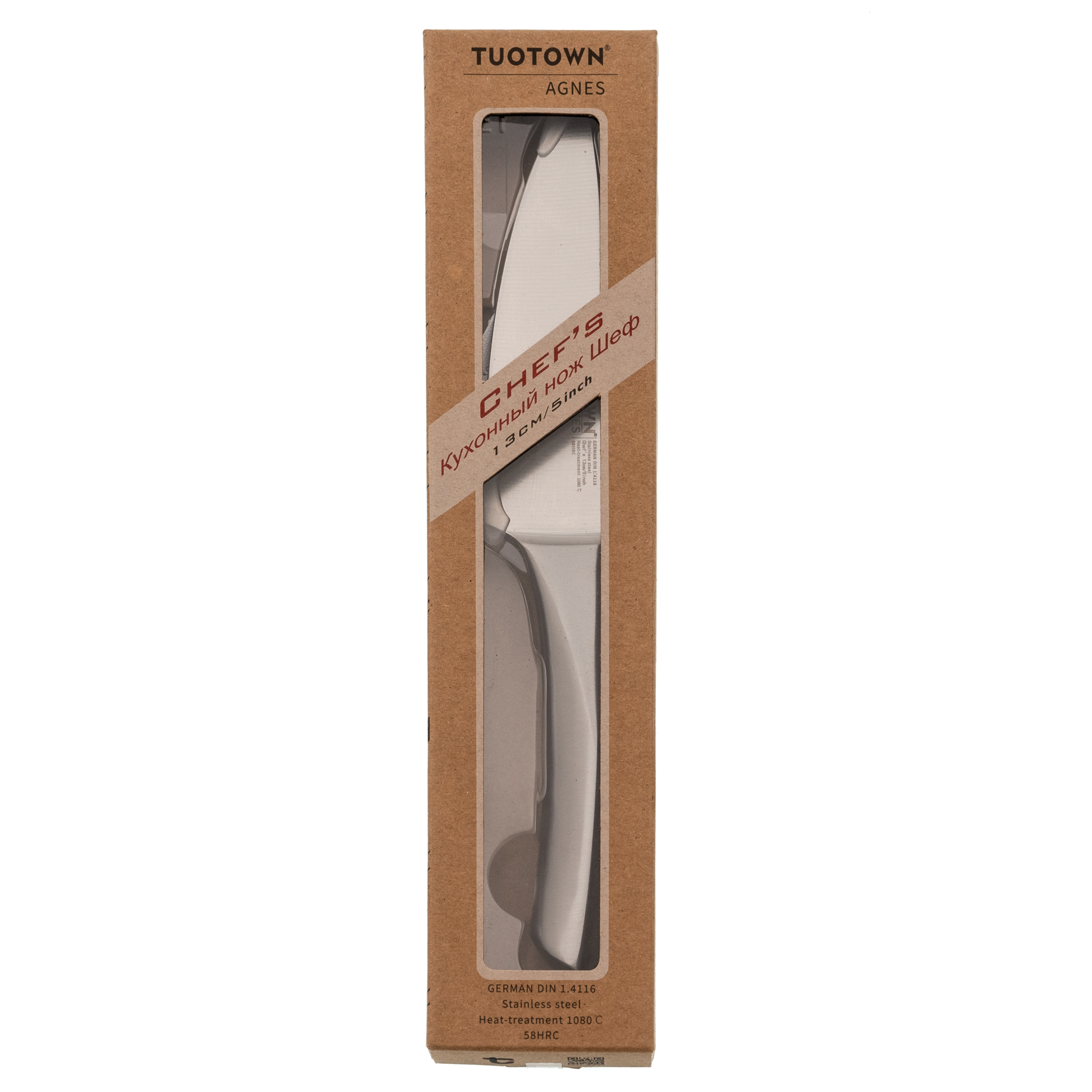 Уменьшенная версия шефа Agnes от TuoTown создана для тех случаев, когда нужен полный контроль и аккуратность. Это всё тот же универсальный кухонный нож, но в более компактном формате. Он отлично подходит для ежедневных задач, где важны манёвренность и точность: нарезка овощей, работа с небольшими кусками мяса и рыбы, подготовка ингредиентов перед готовкой. Удобный вариант и для дома, и для профессиональной кухни, особенно когда большой шеф кажется избыточным.