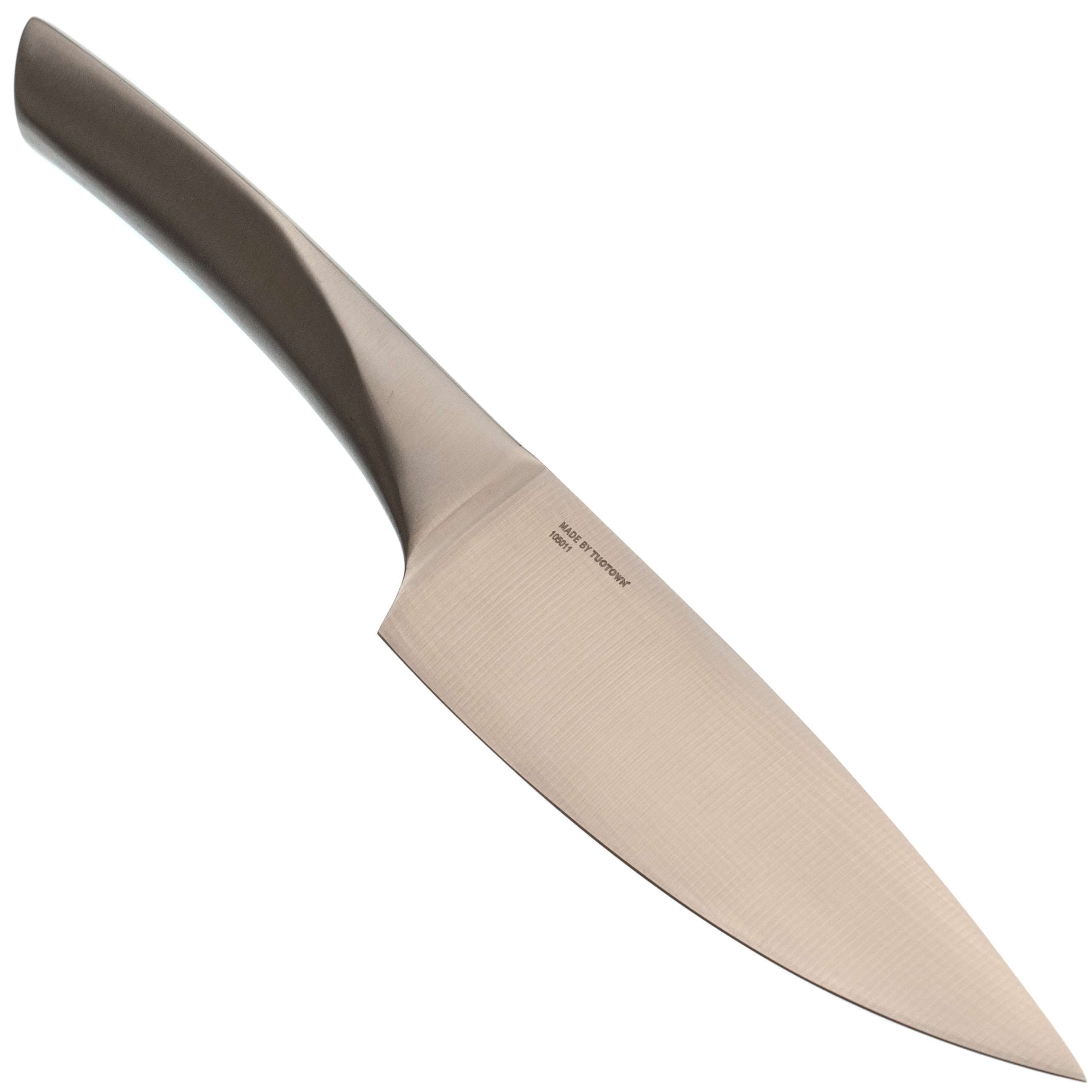 Клинок короче, но сохраняет правильную геометрию: он широкий, тонкий и с прямыми спусками от обуха. За счёт этого нож режет легко и предсказуемо, хорошо контролируется на доске и подходит для более деликатной работы. Отличный баланс между универсальностью и точностью.