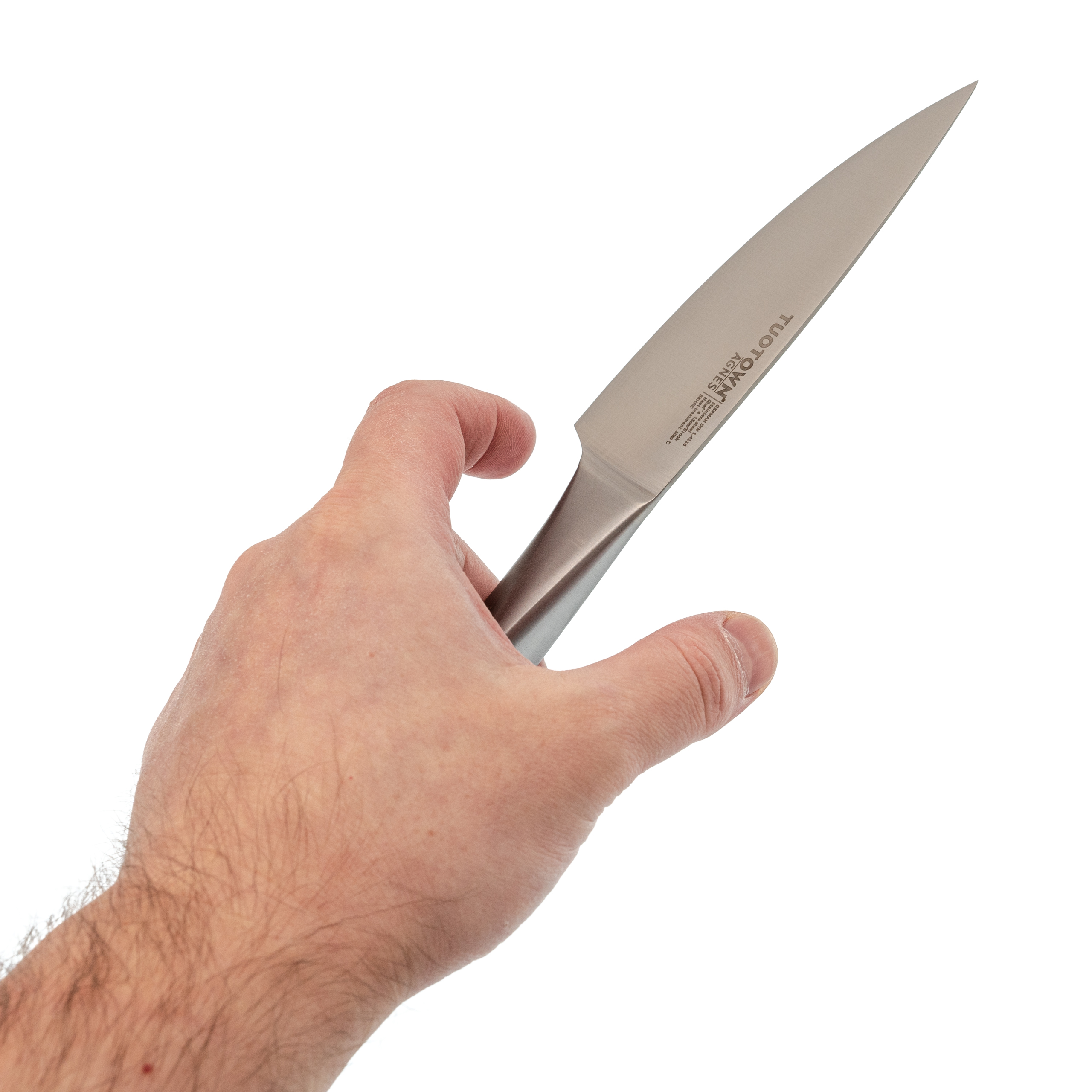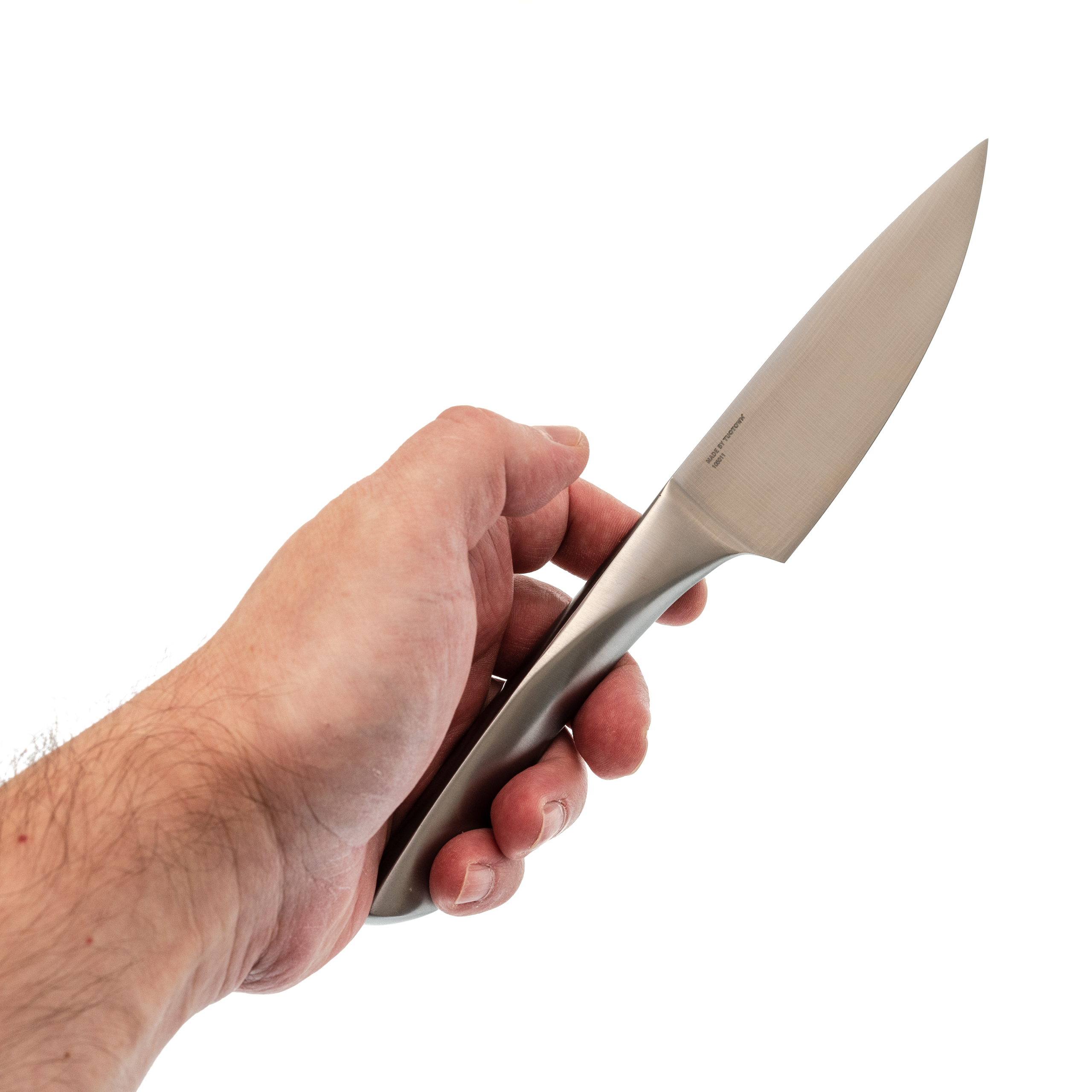 Рукоять из нержавеющей стали. Надёжная и долговечная, не впитывает запахи и влагу. Подходит для интенсивного использования и частого мытья без потери внешнего вида.