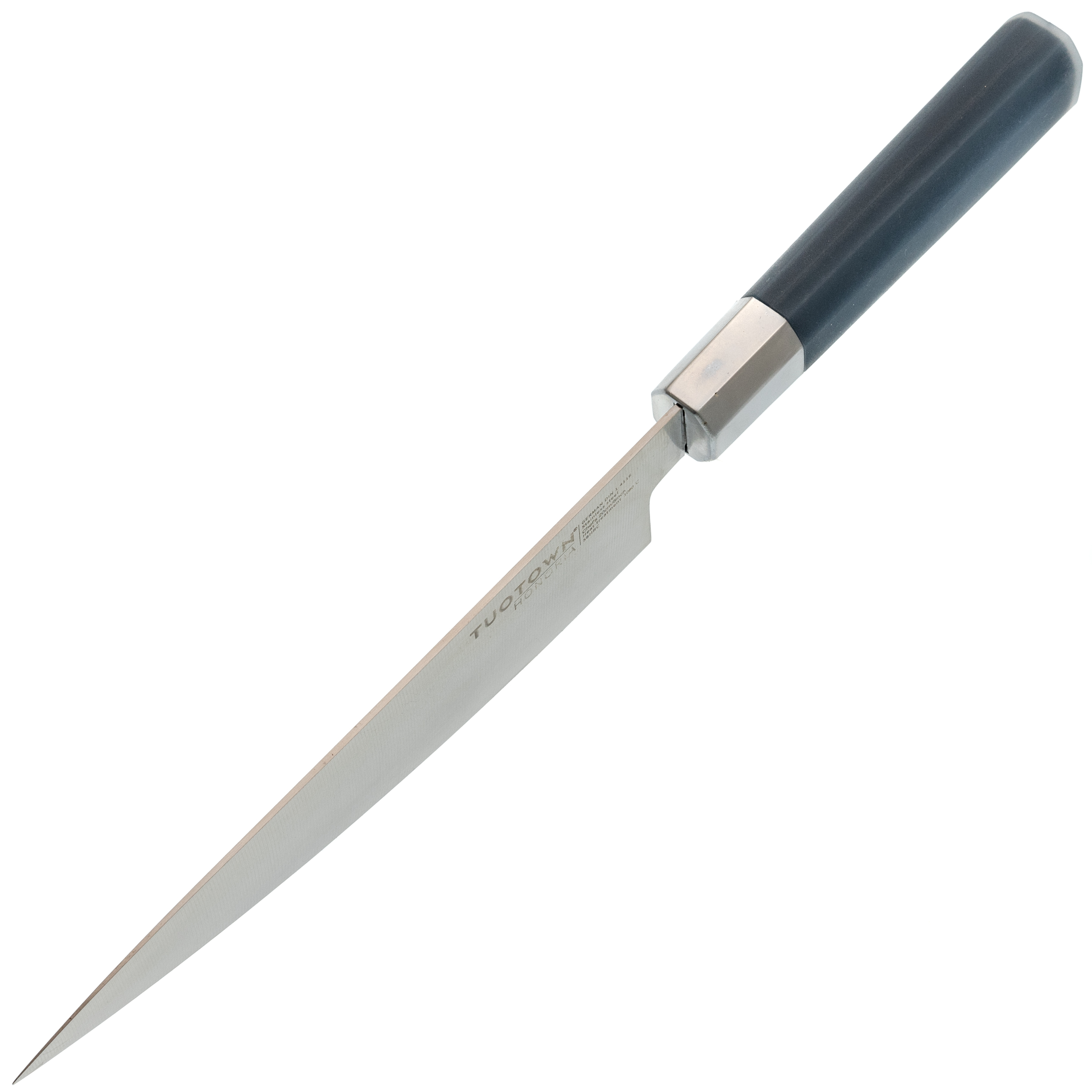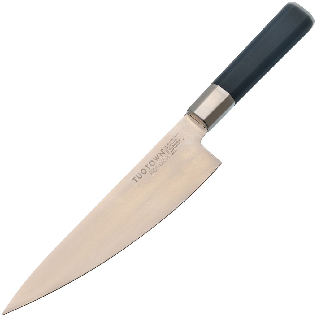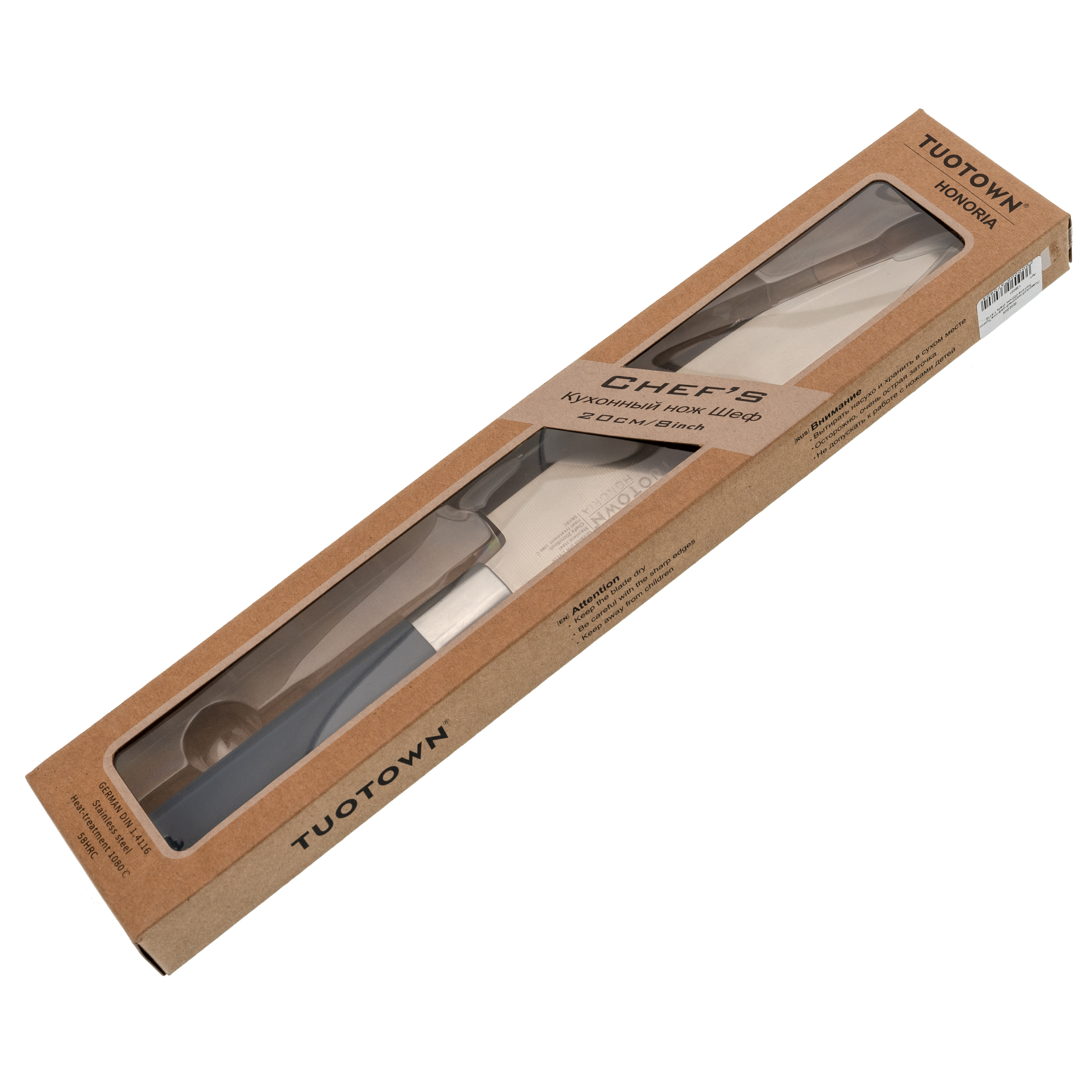 Шеф Iliona от Tuotown - это классический кухонный формат, знакомый и понятный с первого движения. Традиционная европейская форма делает нож удобным для всех базовых задач: шинковки, нарезки, разделки. Он подойдёт тем, кто ищет простой и качественный инструмент без сюрпризов, на который можно положиться каждый день.