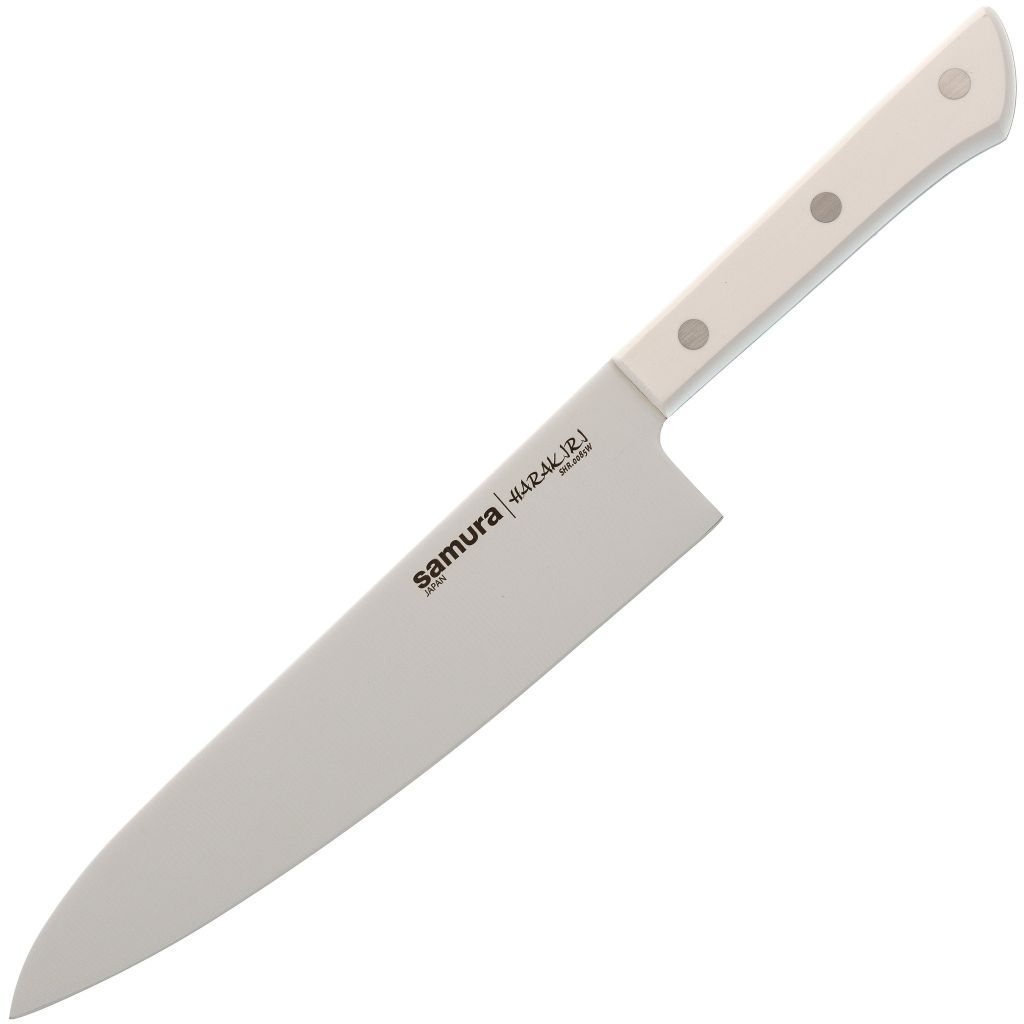 Серия Harakiri от Samura включает в себя качественные бюджетные ножи без лишних элементов. Их дизайн предельно прост и лаконичен, и в этом их сила.Клинок выполнен из простой и проверенной временем стали AUS-8, которая обладает высоким сопротивлением к коррозии и легко точится. Это одна из самых распространенных сталей, используемых в современных кухонных ножах. Отличная режущая геометрия позволяет работать с любыми продуктами: от овощей и фруктов до мяса и рыбы.Рукоять выполнена из пластика, что делает его еще более бюджетным и практичным. Пластик не боится агрессивных кухонных сред, включая высокую влажность, и при этом обладает высокой прочностью при малом весе.
