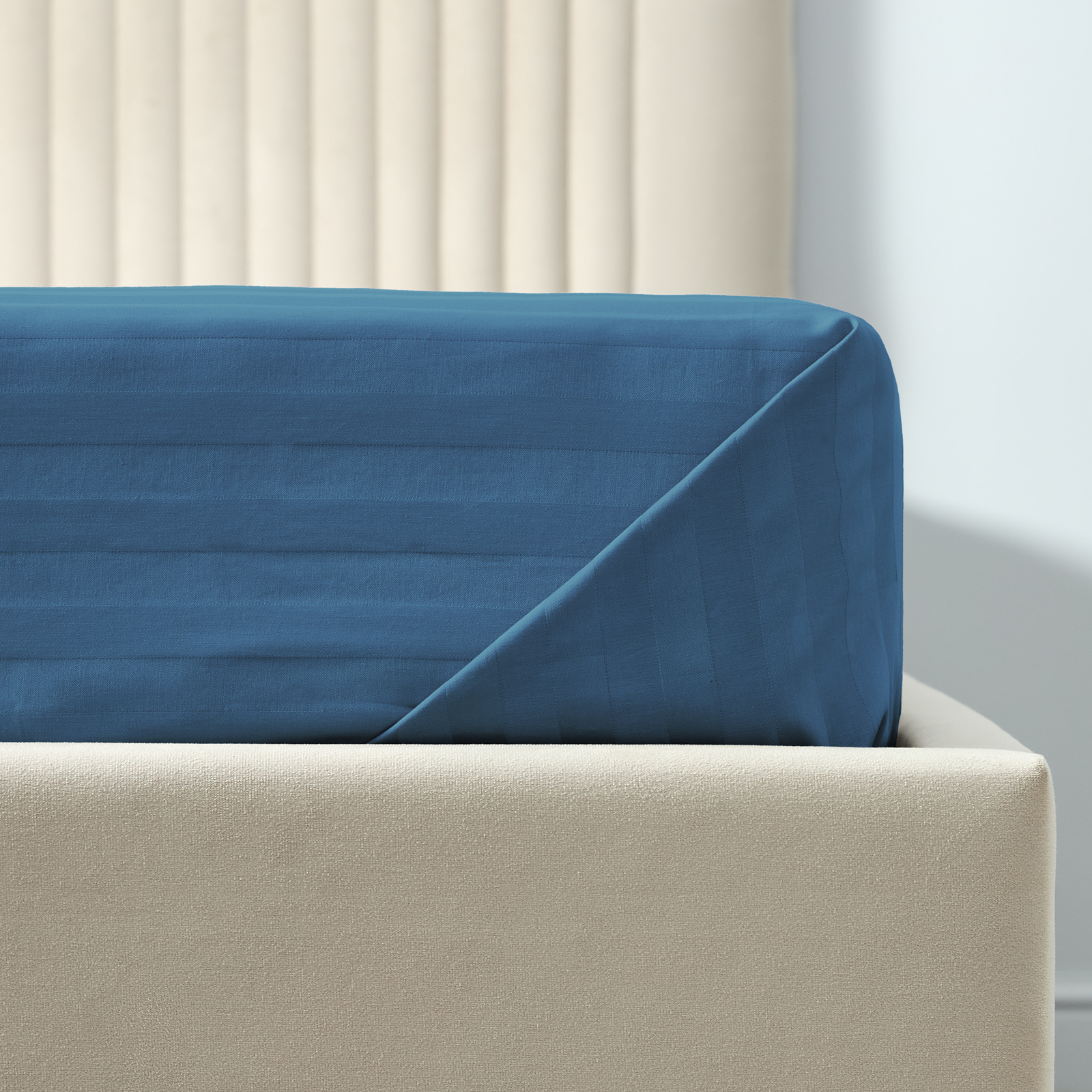 Простыня на резинке Экрю страйп-сатин 40156