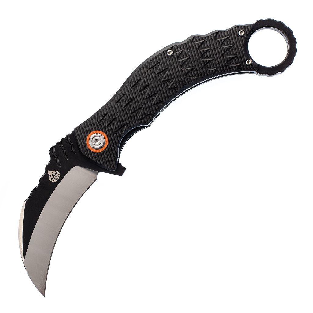 QS120-B Складной нож керамбит Eagle Black, сталь D2, рукоять G10 выполнен из современных материалов и по своему целевому назначению является достаточно универсальным ножом для ежедневного использования. Одной из фишек ножей с такой геометрией является возможность выполнения силового реза при расположении ножа "от себя". Такая особенность может пригодиться, когда нужно перерезать кабель или толстую синтетическую веревку, разрезать ремень безопасности или садовый шланг. Нож также пригодится в экстремальной ситуации - благодаря наличию кольца он уверенно фиксируется любым хватом и его практически невозможно выбить из руки.