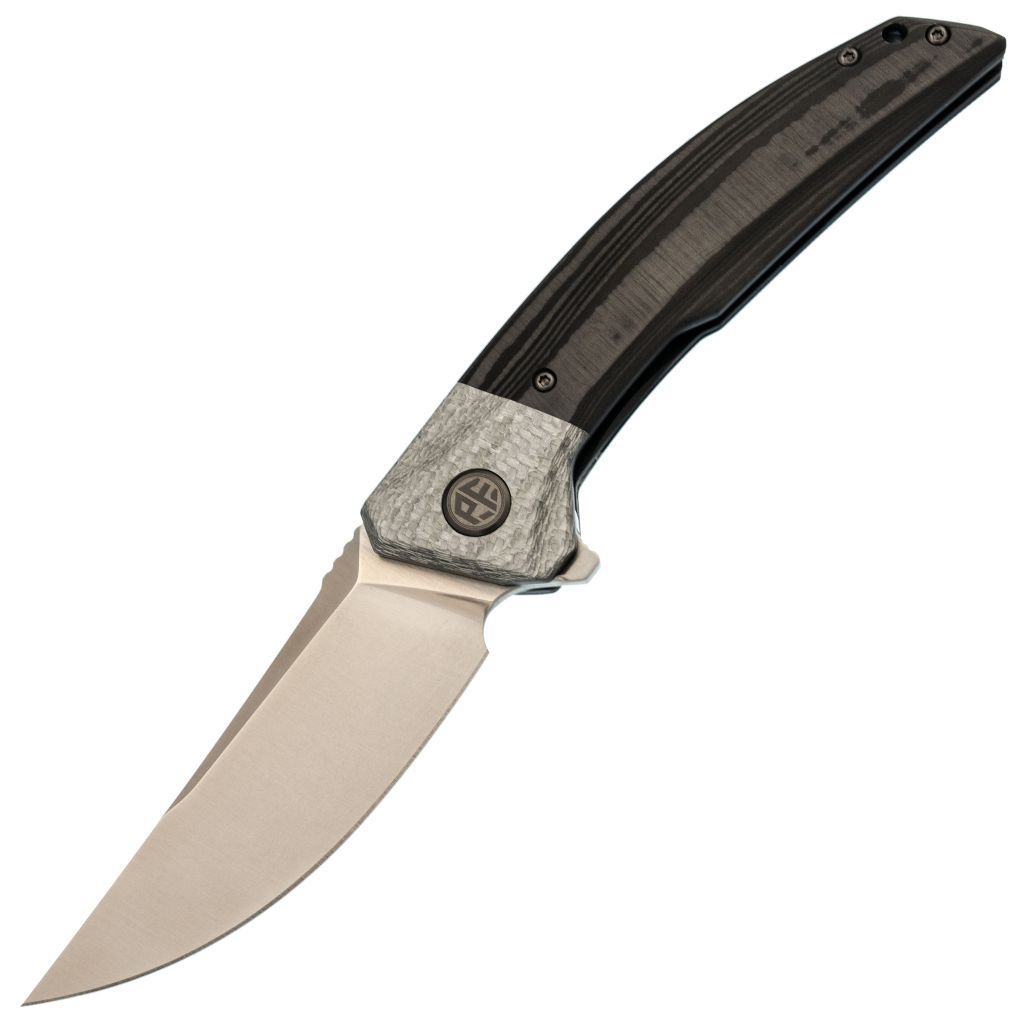 Petrified Fish Deepsea - это складной нож, который привлекает внимание своим оригинальным дизайном и впечатляющими размерами. Несмотря на внушительный вид, нож остается практичным и удобным в использовании, сочетая в себе эстетику и функциональность.Клинок изготовлен из высококачественной стали K110, которая обеспечивает исключительную твердость и долговечность остроты. Эта сталь считается одной из лучших среди традиционных сталей по показателям удержания остроты. Прямые спуски и большой изгиб режущей кромки обеспечивают отличную режущую способность, позволяя легко справляться с различными задачами. Длинный изгиб кромки позволяет резать под разными углами, а деликатный кончик гарантирует точность и аккуратность надрезов.Рукоять изготовлена из карбона, что придает ножу легкость и прочность. Дизайн рукояти включает накладки из двух частей контрастных цветов, создавая привлекательный внешний вид. Замок Liner-Lock имеет скругленную форму, что обеспечивает удобство при закрытии ножа и надежно фиксирует клинок в открытом состоянии. Рукоять анатомически изогнута, что обеспечивает комфортное и естественное удерживание. Подпальцевая выемка и плавник улучшают эргономику и обеспечивают надежный хват. Для удобного ношения нож оснащен клипсой, позволяя всегда иметь его под рукой.