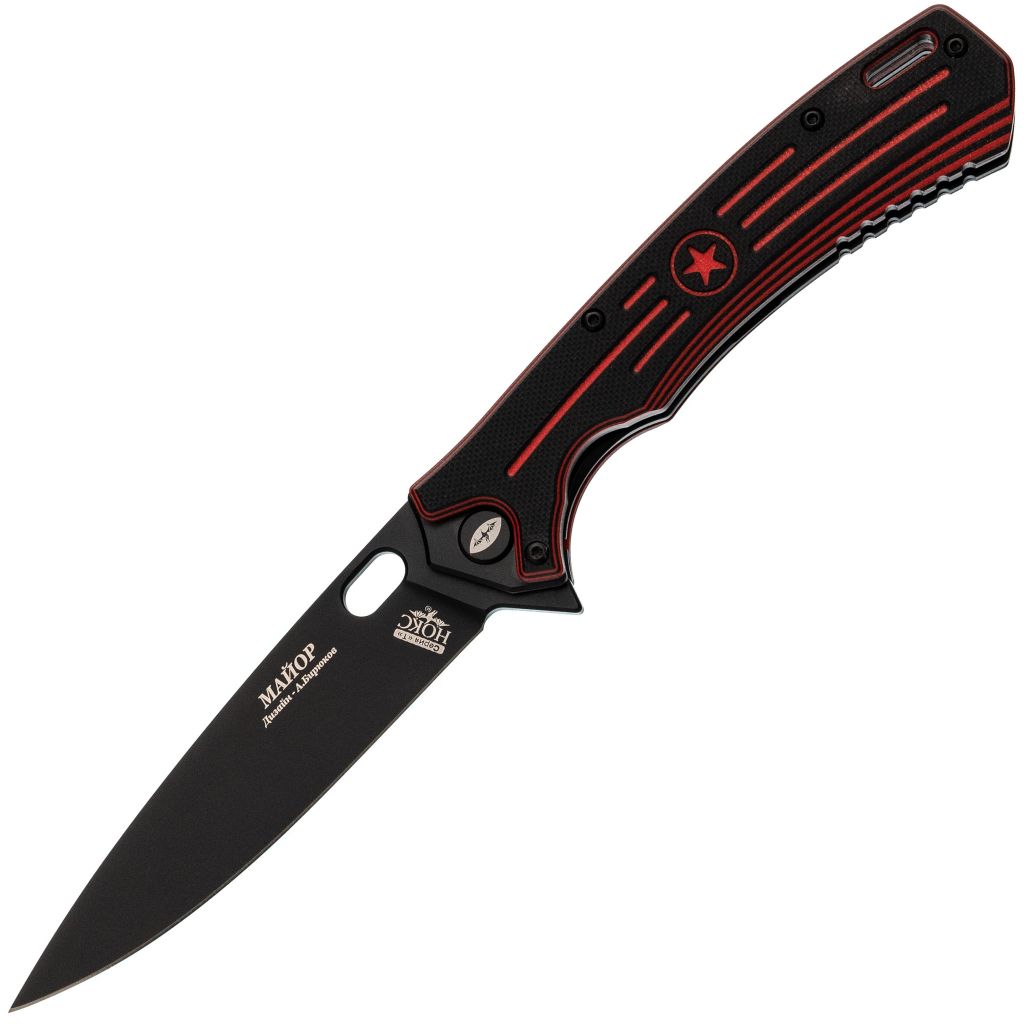 Общая характеристикаНож НОКС Майор – крупное складное изделие отечественного бренда НОКС, предназначенное для активного использования в походах и повседневного ношения. Конструкция объединяет практичный дизайн и применение качественных материалов.Характеристики клинкаКлинок выполнен из стали VG-10, обеспечивающей стабильную работу в любых условиях. Его профиль Drop-Point позволяет выполнять задачи от нарезки продуктов до вскрытия упаковок, а прямые спуски от обуха способствуют равномерному распределению нагрузки при резке и строгании. Механизм открытия реализован через отверстие в клинке и плавник. Обработка по технологии Stonewash скрывает мелкие следы эксплуатации.Конструкция рукоятиРукоять изготовлена из материала G10 – легкого, устойчивого к влаге и изменениям цвета стеклотекстолита, который не впитывает запахи. Форма рукояти с лёгким изгибом и крупной подпальцевой выемкой, усиленной плавником, обеспечивает удобное и безопасное удержание. Фиксация клинка осуществляется замком Liner-Lock, удерживающим его в открытом состоянии. Дополнительно предусмотрены карманная клипса и темлячное отверстие для ношения и возможности установки аксессуаров.