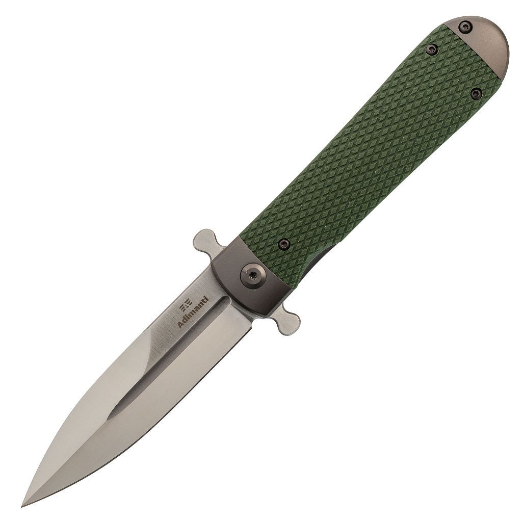 Нож складной Adimanti Samson - это воплощение уникального дизайна, созданного Алексеем Пономарёвым. Вдохновлённый творениями мастера Самсонова, этот инструмент сочетает в себе традиционный стиль и современное исполнение. Дизайн-проект Samson - дань уважения классическому русскому ножевому искусству с присущими ему характеристиками и эстетикой.Клинок изготовлен из высококачественной стали D2, которая известна своей способностью долго удерживать заточку и высокой твёрдостью. Его кинжальная форма Spear-Point обеспечивает превосходную проникающую способность и деликатный кончик, идеальный для выполнения тонких и точных надрезов. Флипер, стилизованный под гарду, подчёркивает сходство с традиционными русскими ножами, придавая модели уникальный, узнаваемый вид.Рукоять состоит из стальных лайнеров, претин, обеспечивающих прочную основу, а также накладок из стеклотекстолита G10 с цепкой текстурой, напоминающей резьбу. Такой дизайн предоставляет уверенный и комфортный хват, даже во влажных или скользких условиях.