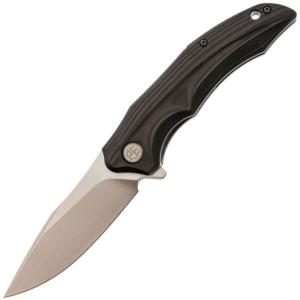 Hairtail (Рыба Сабля) это новинка от бренда Petrified Fish, которая как всегда сочетает в себе утилитарность и нетривиальный дизайн, характерный для компании.Клинок выполнен из стали K110, которая славится своей высокой износостойкостью и превосходной резьбой. Благодаря этим качествам она долго держит заточку и обладает агрессивным резом, что делает её отличным выбором для ножа, которым нужно много работать. Геометрия у ножа отличная - форма Clip-Point с гарпунными мотивами, прямые высокие спуски и обух 4 мм. Это не только обеспечивает отличные режущие свойства, но и придает достаточную прочность. Благодаря такой конструкции нож легко справляется с различными задачами: от нарезания продуктов до выполнения более сложных работ. Кроме того, эстетичный дизайн клинка делает его не только функциональным инструментом, но и стильным аксессуаром для любителей качественных изделий. Рукоять выполнена из двух толстых стальных лайнеров, обеспечивающих надежность и прочность. Накладки из карбона добавляют не только элегантности, но и уникальности благодаря своей текстуре. Они приятно ложатся в руку, обеспечивая комфортное использование инструмента.