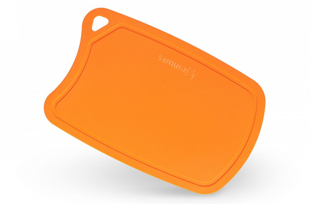 Цветная разделочная доска от Samura – это гигиеничный и очень удобный аксессуар.Внушительная площадь рабочей поверхности (380x250 мм) даёт возможность нарезать на ней даже значительные объемы.Гибкая, но прочная структура позволяет с лёгкостью стряхнуть нарезанное в кастрюлю или салатницу.Аккуратные и бережливые владельцы хороших кухонных ножей наверняка оценят чрезвычайно технологичный материал поверхности. Режущей кромке лезвия обеспечено щадящее отношение, а следовательно, ножи реже нуждаются в правке и заточке.Доска надёжно фиксируется на столе и не скользит по нему.