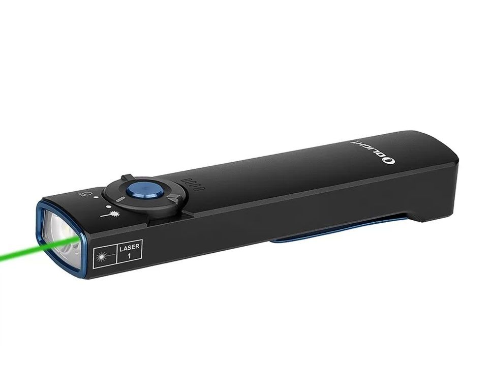 EDC фонарь Olight Arkfeld с лазерным целеуказателем. ЛЦУ зеленого цвета.
