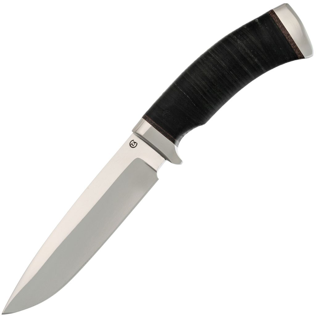 Рукоять из наборной кожи, используемая в данном ноже, обладает уникальными свойствами. Её пластичность позволяет комфортно держать инструмент в руке даже при высоких нагрузках, не боясь о её трещинах или поломках. Кроме того, кожаная рукоять не будет холодить вашу руку даже в прохладную погоду. Тыльная часть имеет специальный изгиб для удобства использования - это позволяет выполнить ножом работы, которые требуют рубки. Надежность и функциональность этой конструкции делают его отличным помощником как на природе, так и на производственных объектах.