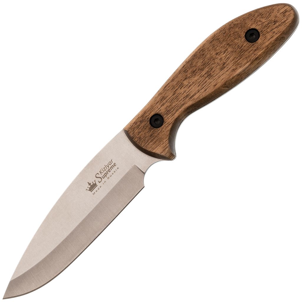 Fortuna – идеальный нож для любителей именно рабочих инструментов, которыми хочется пользоваться постоянно.Такой нож пригодится на даче а так же туристам, рыбакам или охотникам – всем, для кого «хороший рез» - не пустой звук.Благодаря обуху в 2,4 мм и тонкому сведению, Fortuna отлично справится с нарезкой продуктов, разделкой дичи или рыбы, с работами по хозяйству. Продуманная рукоять не наминает ладонь при долгой работе, очень ухватистая и приятна наощупь.Кроме того, древесина корневой части кавказского ореха очень красива, а красивым ножом работать вдвойне приятно.Надежна и неприхотлива сталь клинка, японская AUS-8, – она отличается коррозионной стойкостью и уверенно работает по любым материалам. Фирменная азотная закалка отлично раскрывает эту сталь – проявляется не только высокая прочность, но и солидная износостойкость.Fortuna комплектуется кожаными ножнами со свободным подвесом, в которые нож «садится» глубоко и плотно – не выпадет.Fortuna – удачный нож во всех смыслах!