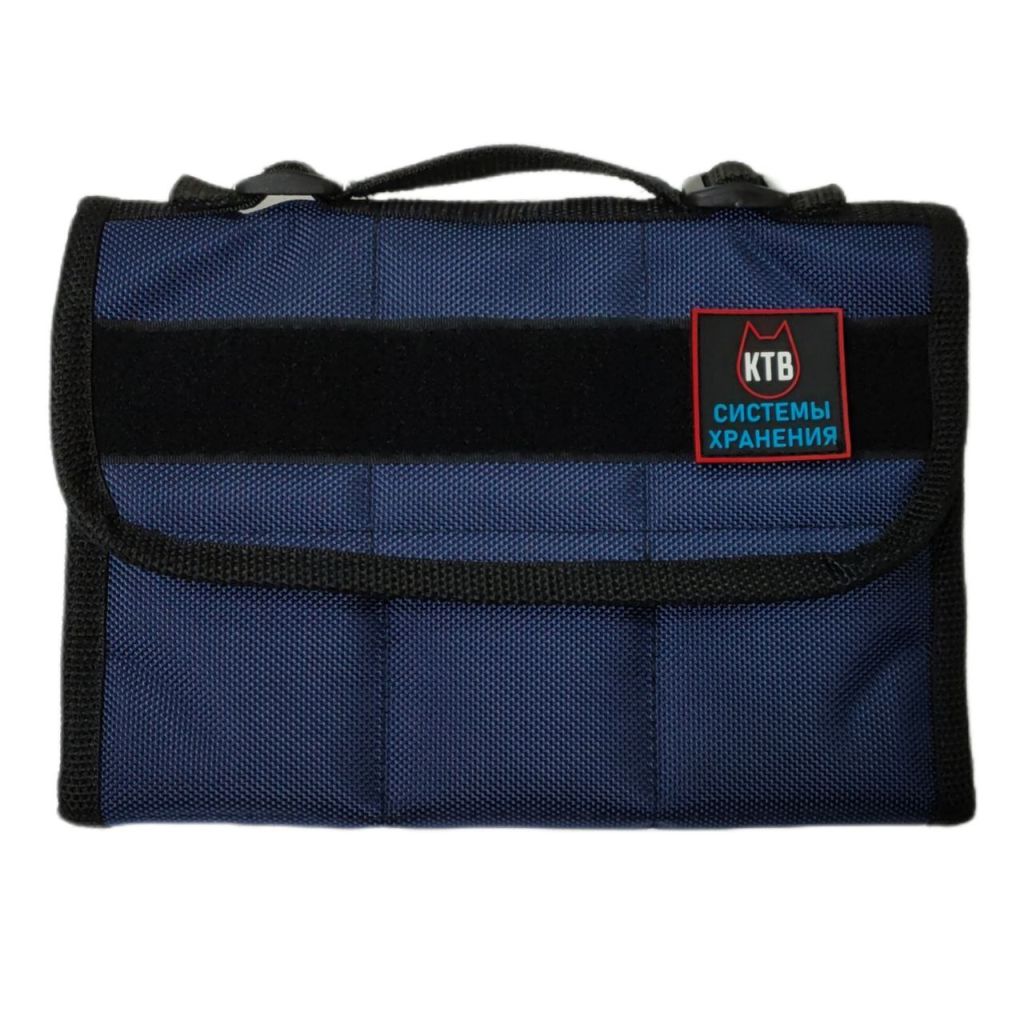 Сумка от KTB в тёмно-синем цвете сочетает в себе надёжность и сдержанный дизайн. Идеально подходит для тех, кто ищет решение для компактного и аккуратного хранения ножей без лишних элементов.