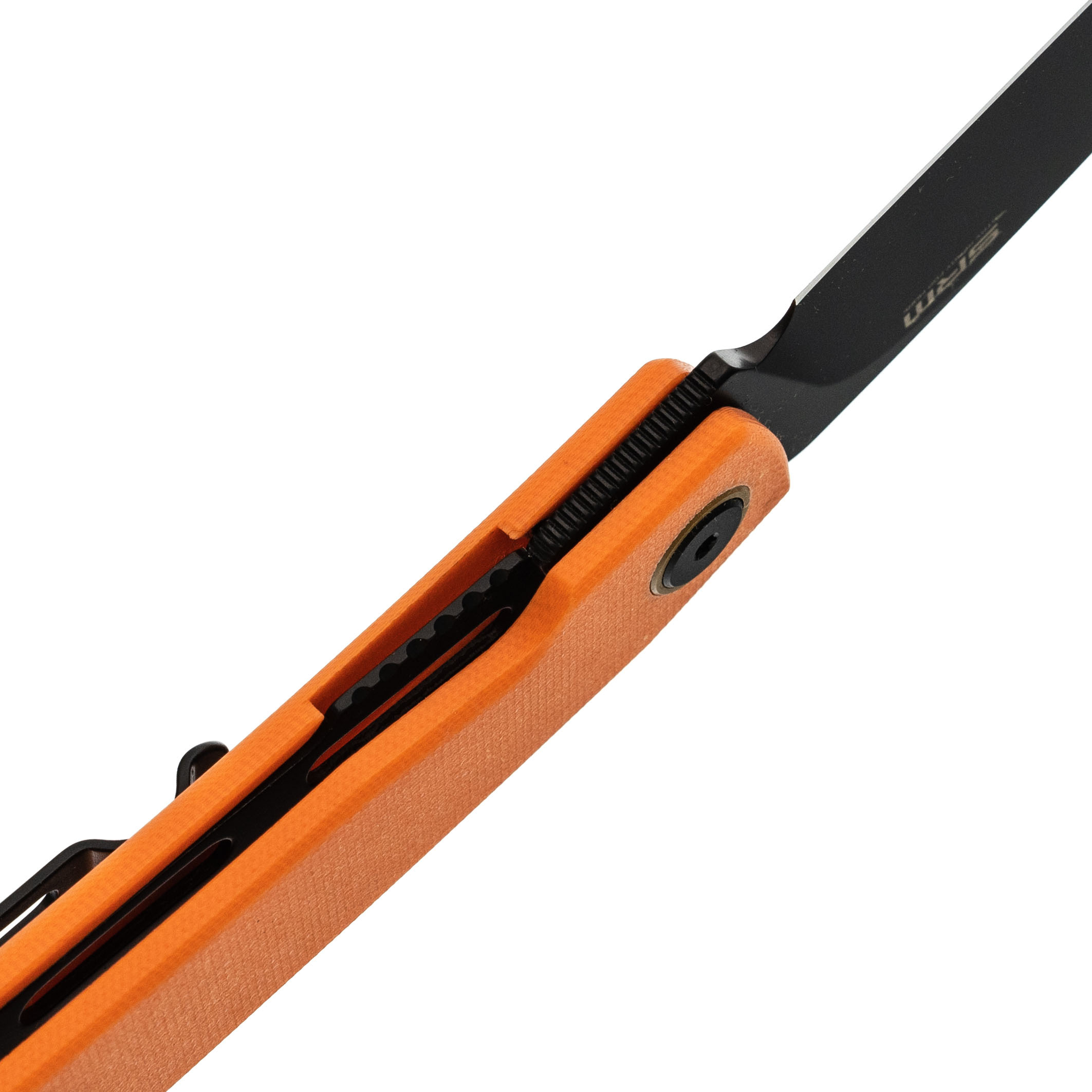 Клинок: сталь 14C28N с черным оксидированием. Черное оксидирование делает клинок не только стильным, но и улучшает его стойкость к коррозии. Эта сталь прекрасно удерживает остроту, а оксидированное покрытие защищает поверхность от повреждений.