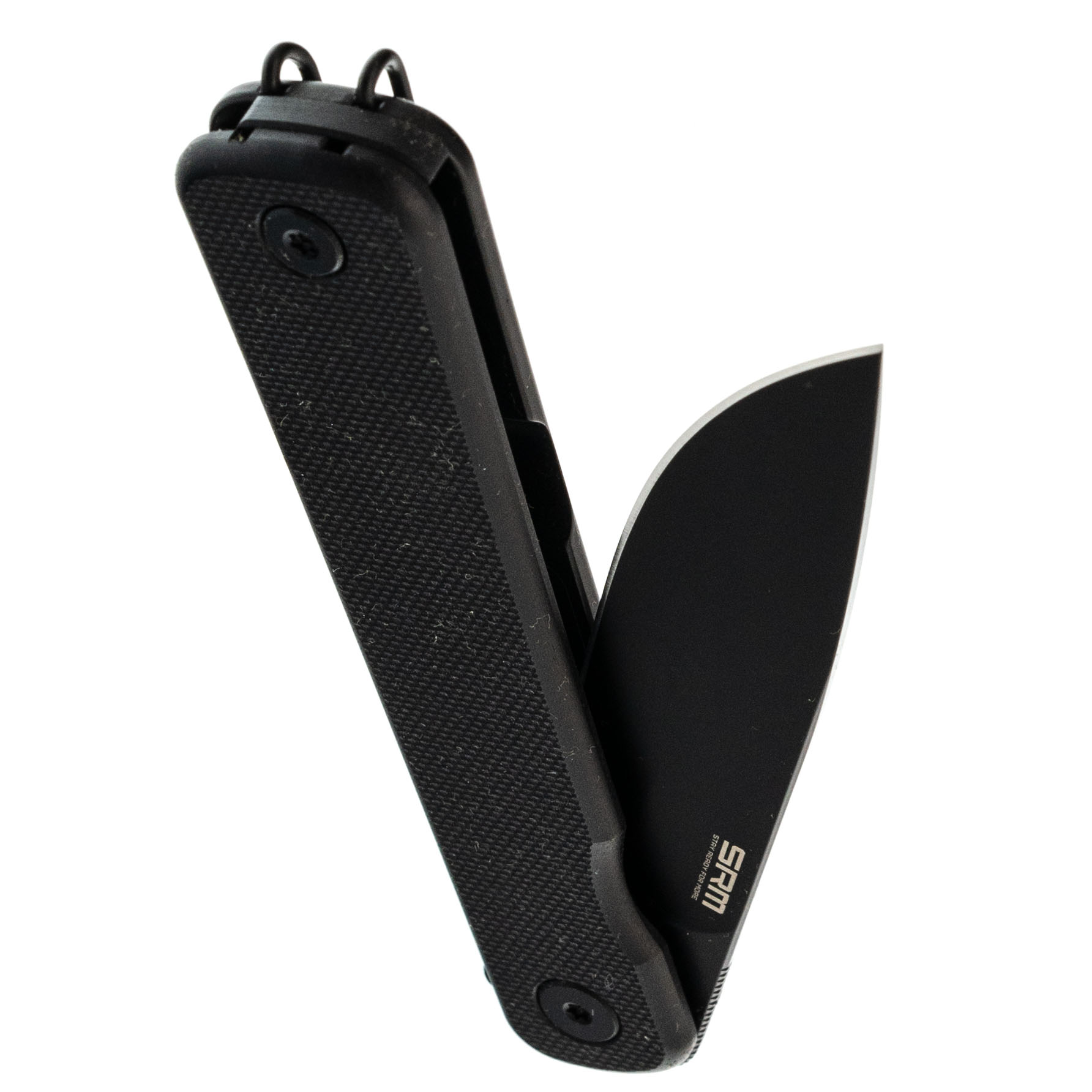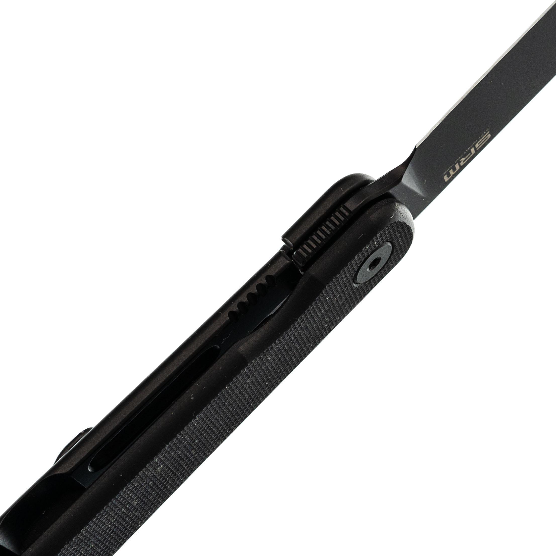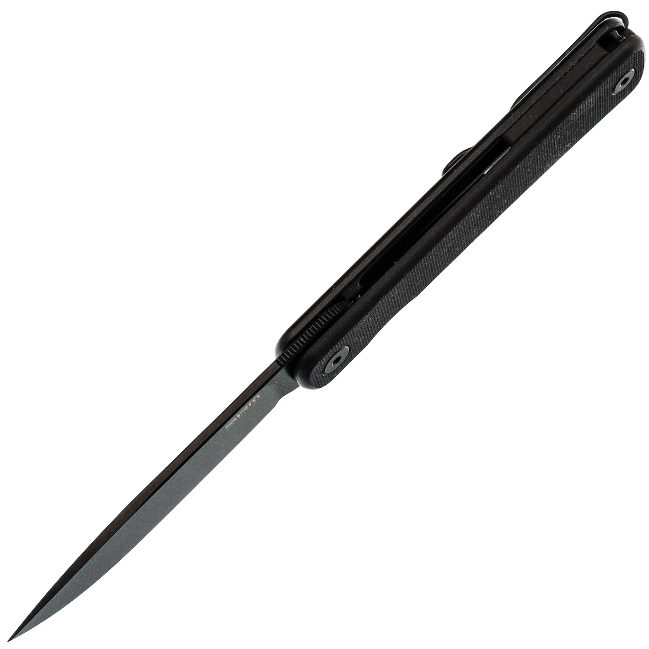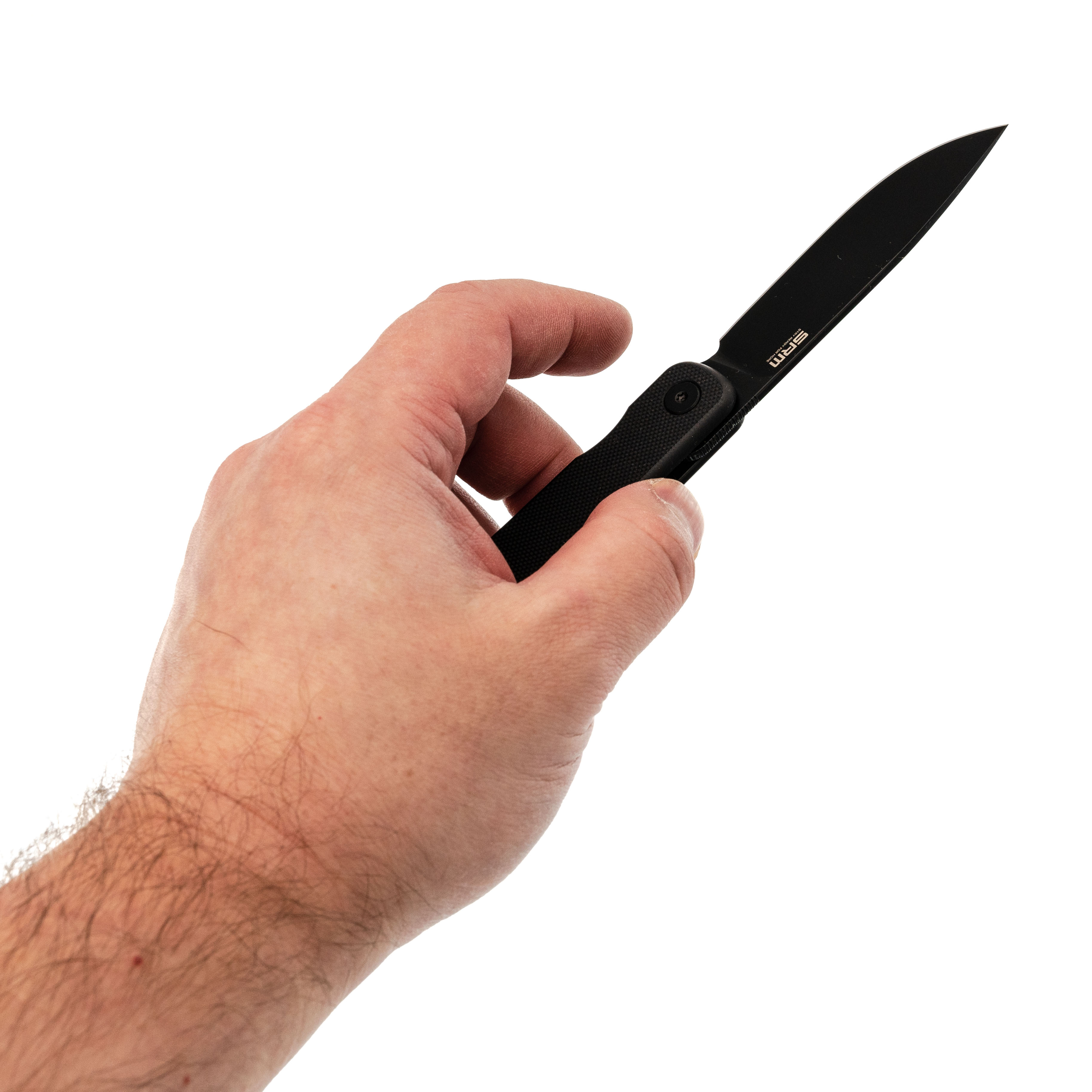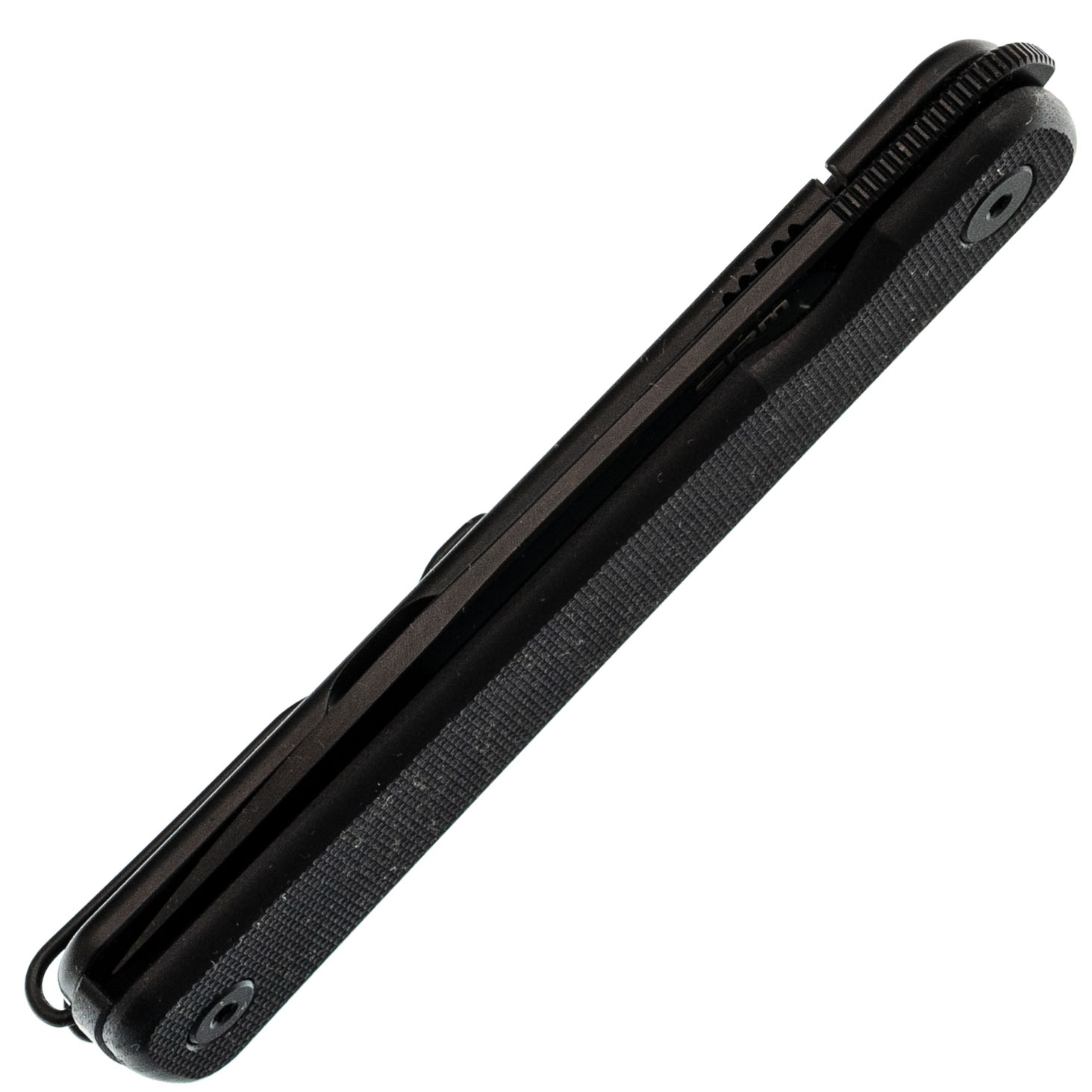 Рукоять выполнена из G10 с черным покрытием, что делает модель визуально сдержанной и практичной. Эргономичная форма адаптирована под разные типы хвата, обеспечивая комфорт даже при длительном использовании. Текстура материала предотвращает скольжение, а легкость конструкции способствует удобству при постоянном ношении. Модель сочетает в себе надежность, строгий внешний вид и продуманную геометрию, делая ее актуальной для тех, кто ищет сбалансированный инструмент без лишних деталей.