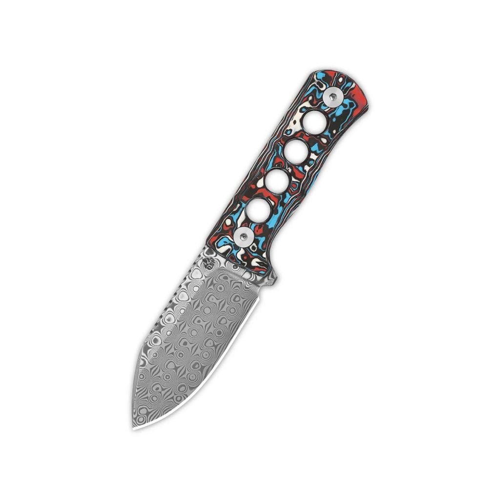 Фиксированный нож QSP Canary, сталь дамаск, рукоять многоцветный хаотичный карбон