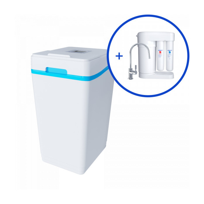 удаляет соли жесткости (до 24 мг-экв/л), железо и марганец (суммарно до 5 мг/л) и органические примеси (гуминовые кислоты и фульвокислоты) (ПМО до 10 мг О2/л) уменьшает расход моющих средств в 4 раза сокращает расходы на нагревание воды до 75% заботится о мягкости кожи и волос защищает технику и сантехнику от известкового налёта и накипи подходит для очистки воды из любого источника