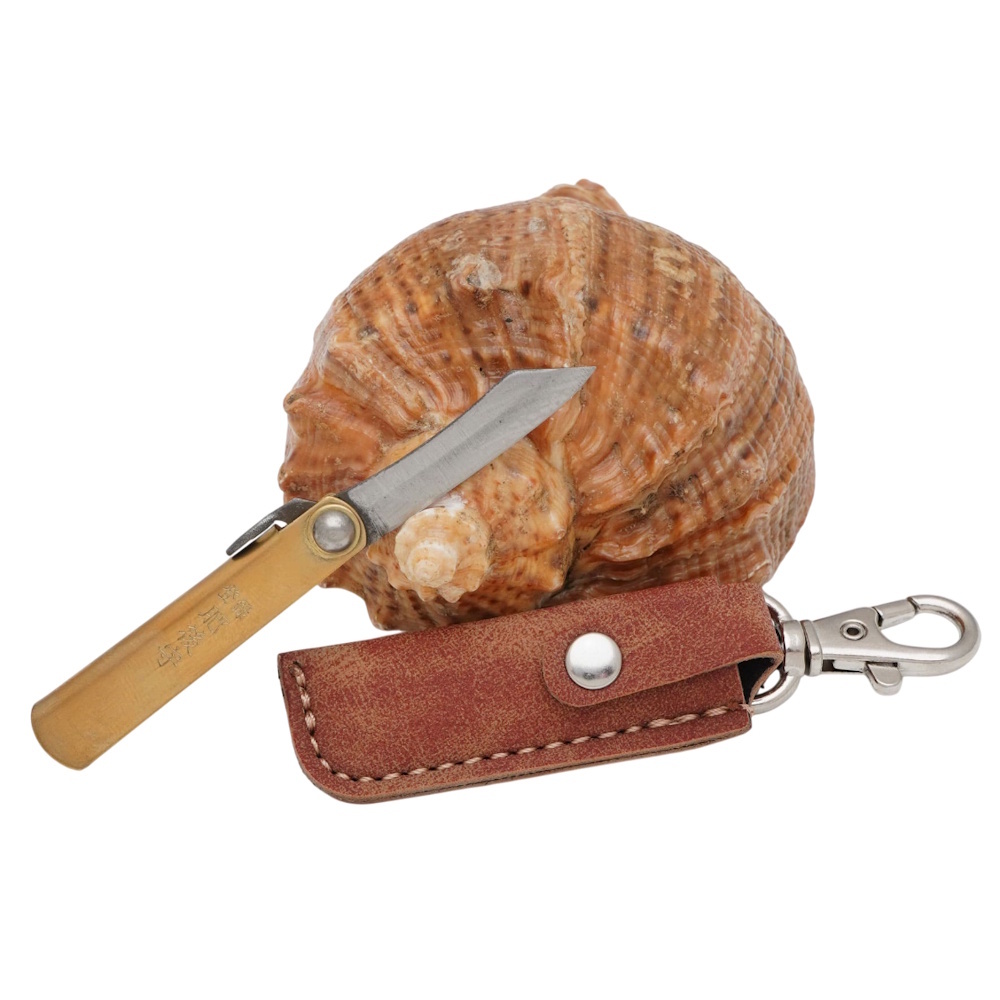 Складной нож Nagao Higonokami Mame Miniature, 40мм, сталь SK-5, рукоять латунь, коричневый чехол