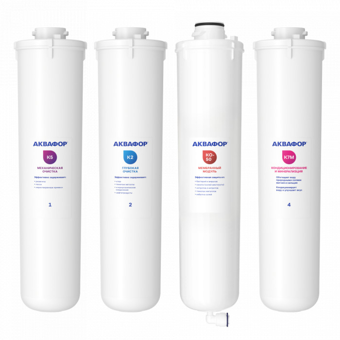 Комплект сменных модулей для системы обратного осмоса с мембраной. Подойдет тем, у кого срок службы мембраны (1,5 года) подходит к концу.