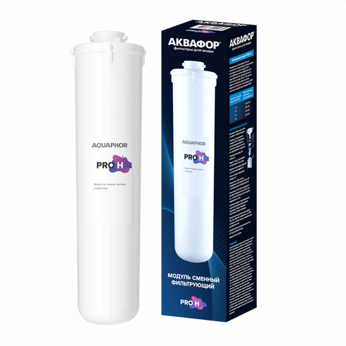 Модуль Pro Н содержит смесь высококачественных ионообменных смол и эффективно снижает накипь в условиях сложной водопроводной воды. Удаляет железо Fe2 и марганец.