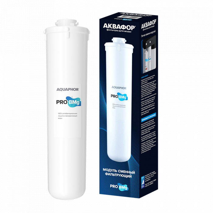 В модуле Pro BMg задействованы сразу 3 технологии: карбонблок, половолоконная мембрана и минерализатор. Вода, очищенная обратноосмотической мембраной, при открытии крана фильтра дополнительно кондиционируется и минерализуется модулем Pro BMg. Половолоконная мембрана и входящее в состав карбонблока серебро в активной ионной форме обеспечивают дополнительную 100% антибактериальную защиту. Карбонблок с микроволокном АКВАЛЕН кондиционируют очищенную воду, а природный материал доломит обогащает её кальцием и магнием. Модуль Pro BMg создаёт оптимальный солевой баланс, чем улучшает вкус воды и делает ее более полезной.