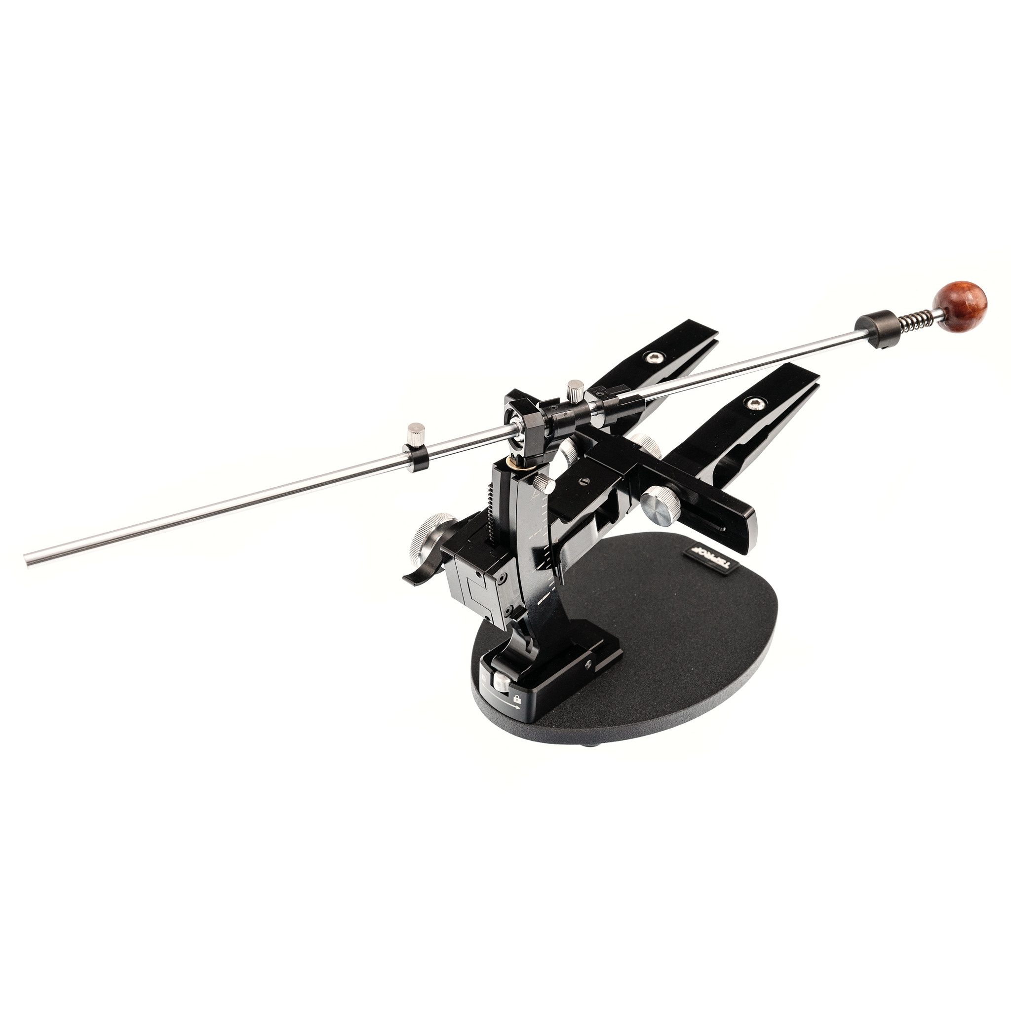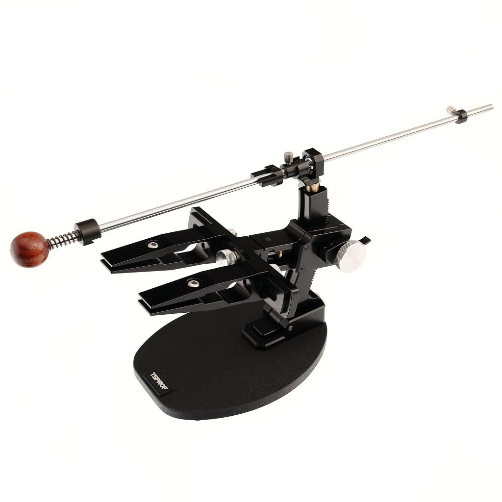 ТОЧИЛЬНЫЙ СТАНОК TSPROF KADET PRO это модель начального профессионального уровня, созданная для тех, кто хочет повысить свое мастерство. Главная фишка этой модели - поворотный стол, который позволяет равномерно подтачивать клинок с обоих сторон. Если в других моделях приходится каждый раз откручивать нож и переставлять его другой стороной вверх, то здесь эта задача решается одним легким движением. Станок совместим со всеми стандартными камнями и подходит для полного заточного цикла.