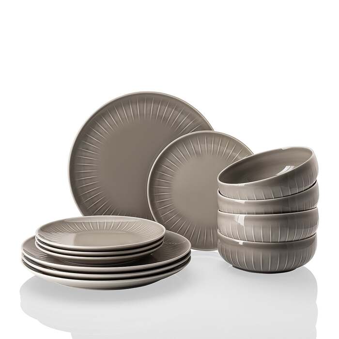 Joyn – коллекция фарфоровой посуды бренда Arzberg с фактурными элементами под старину. В нее входят тарелки, миски, кувшины, емкости для хранения сыпучих продуктов, а также чашки с ручками и без них. Коллекция выполнена в пастельных оттенках мятно-зеленого, серого, розового и белого цвета. В набор из коллекции Joyn входит по 4 плоских тарелки 20 см и 27 см, а также 4 миски (16 см). Набор рассчитан на подачу блюд для 4 человек.