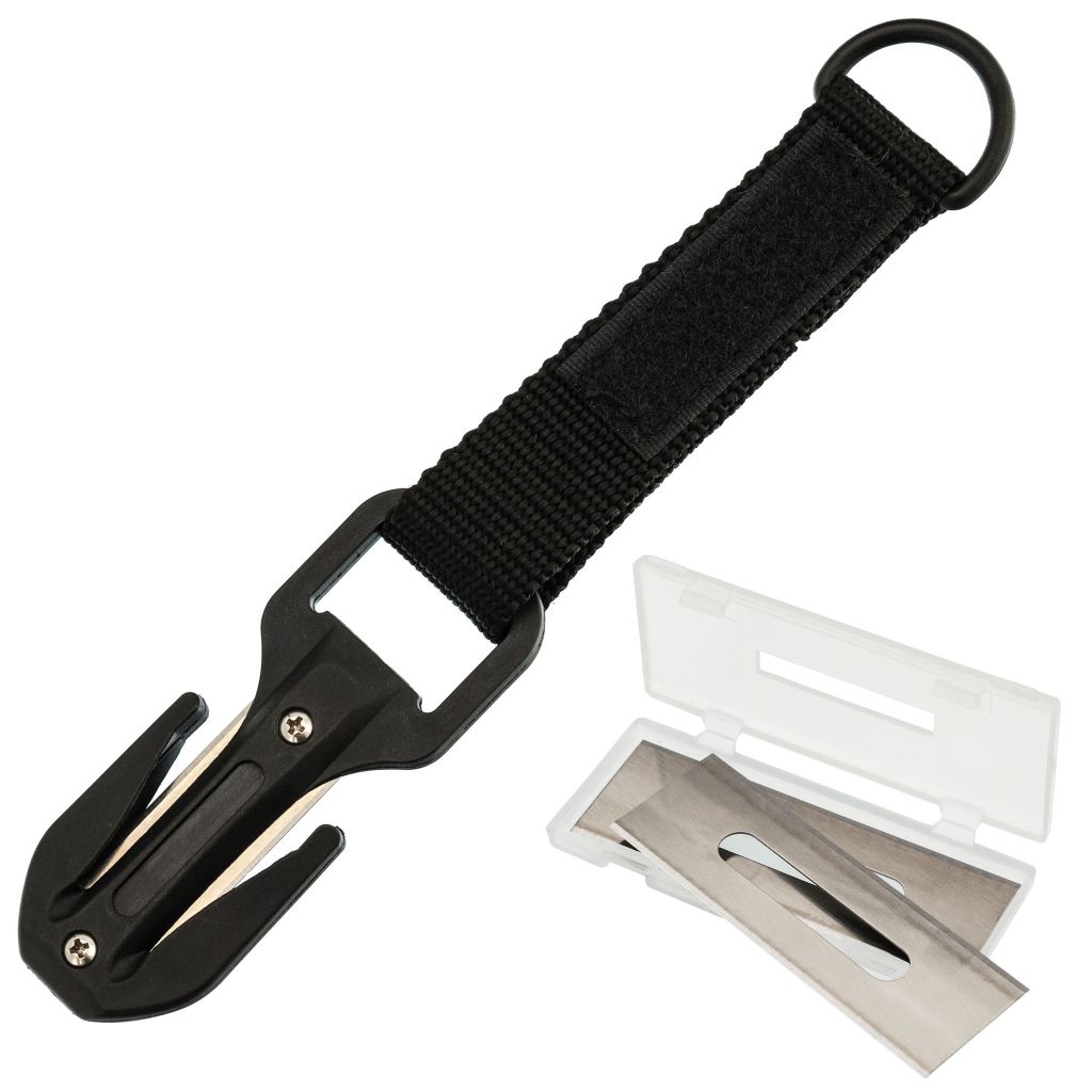 Стропорез с комплектом запасных лезвий – незаменимый инструмент для водителей, дайверов и всех, кто работает с веревками. Запасные лезвия позволяют использовать его как в аварийных ситуациях, так и в повседневной работе. Стропорез оснащен чехлом с системой быстрого извлечения, что обеспечивает удобство и скорость в использовании. Двойная режущая кромка гарантирует длительный срок службы инструмента, так как заточка сохраняется как бы в два раза дольше.В комплекте 2 запасных лезвия.