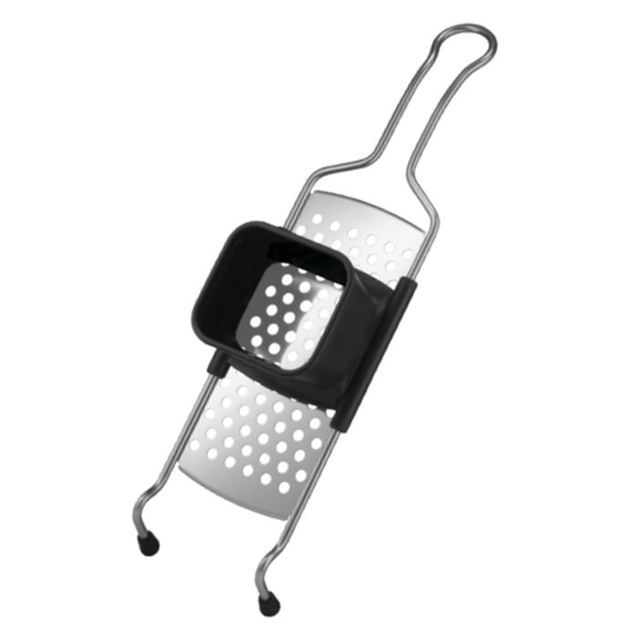 Состоит из двух частей: терки из высококачественной нержавеющей стали 18\10 и подвижной емкости из синтетического материала. Коническая форма обеспечивает быструю и эффективную нарезку теста и картофеля. Легко чистится и не требует особого ухода.