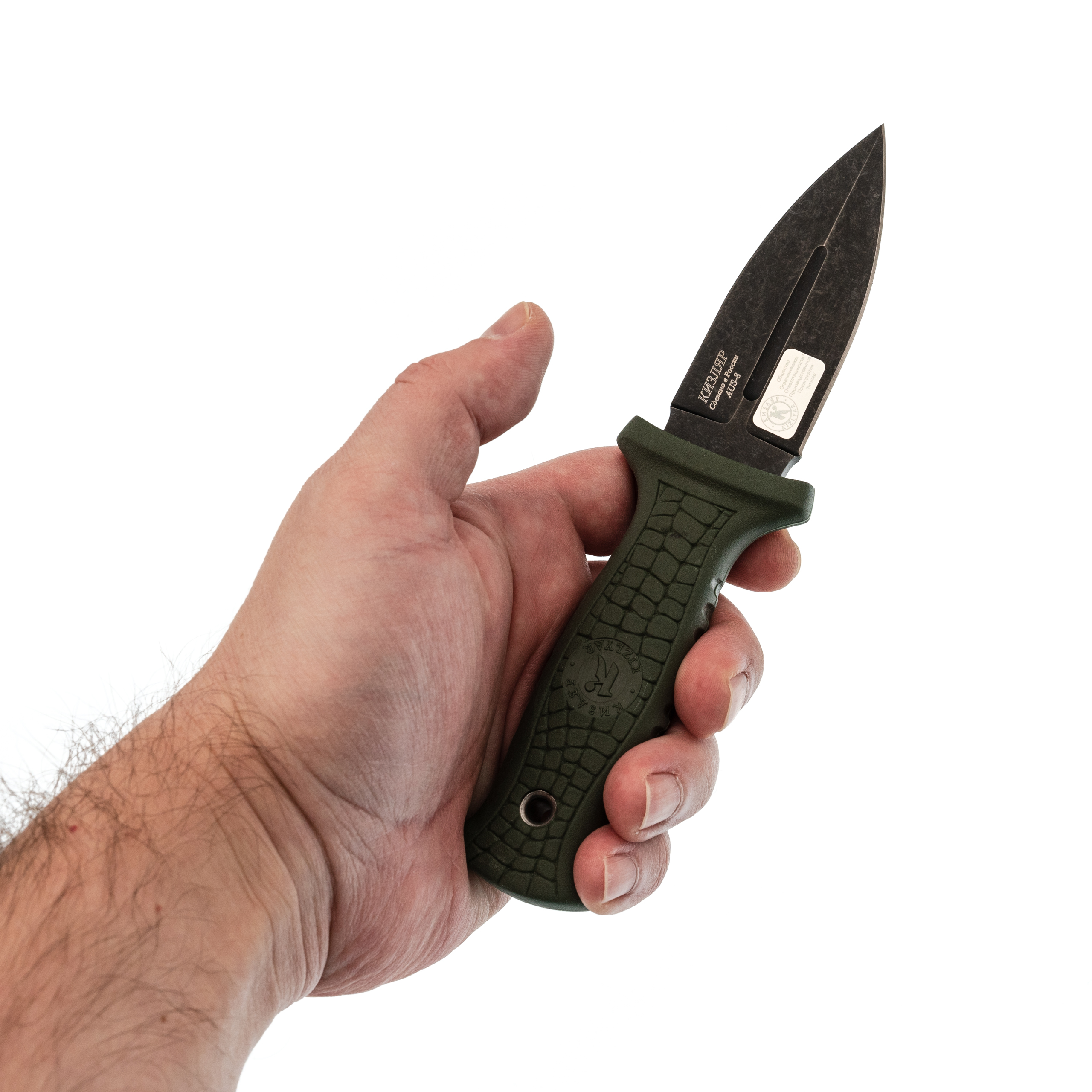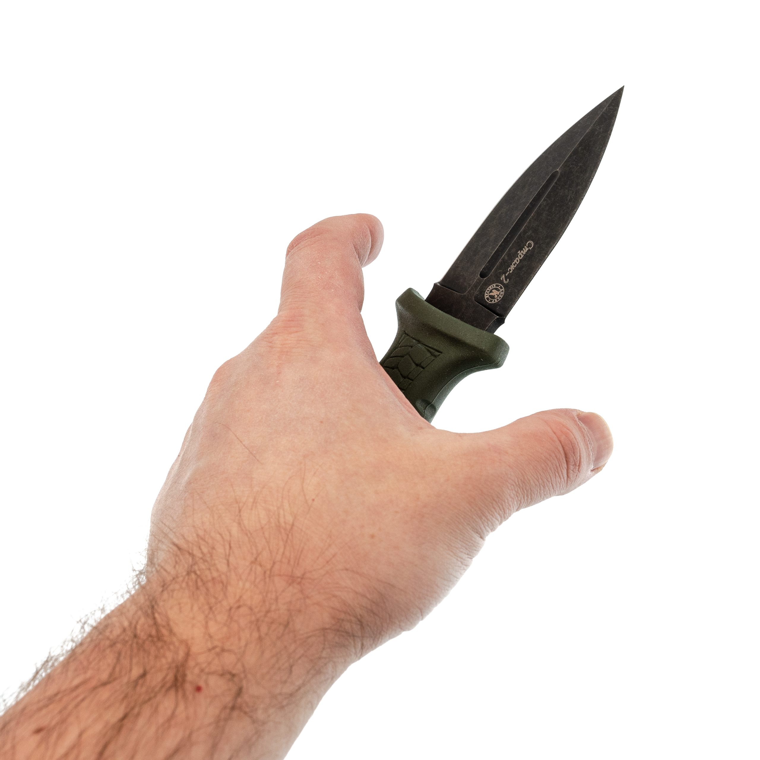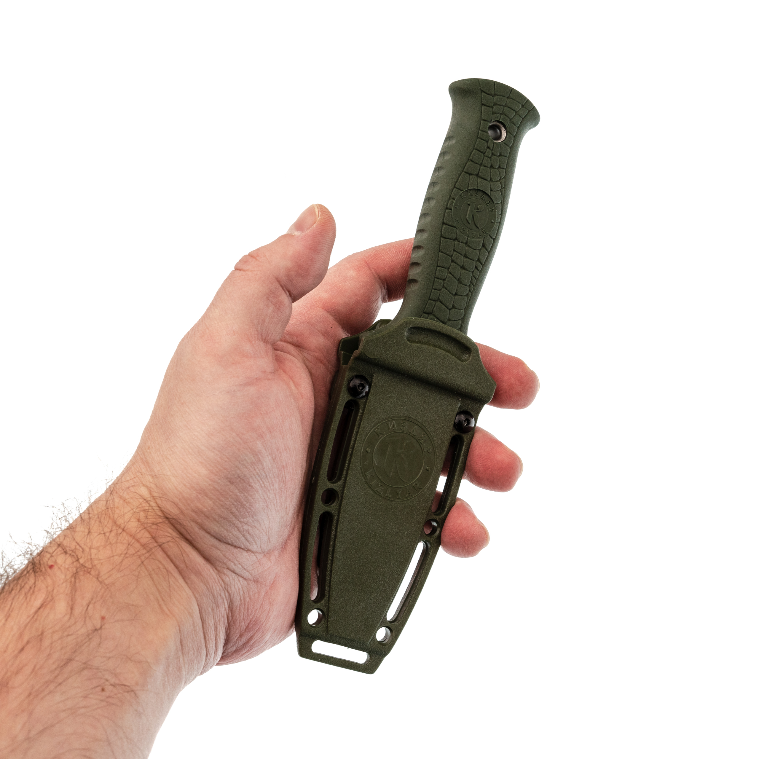Страж 2 - небольшой фикс, который удобно брать в дорогу, в рюкзак или на снаряжение. Вторая версия получила симметричный клинок кинжальной формы: стало проще работать кончиком и точнее контролировать рез в мелких операциях. Версия черно-зелёная: зелёные рукоять и ножны, клинок с покрытием Black Stonewash.