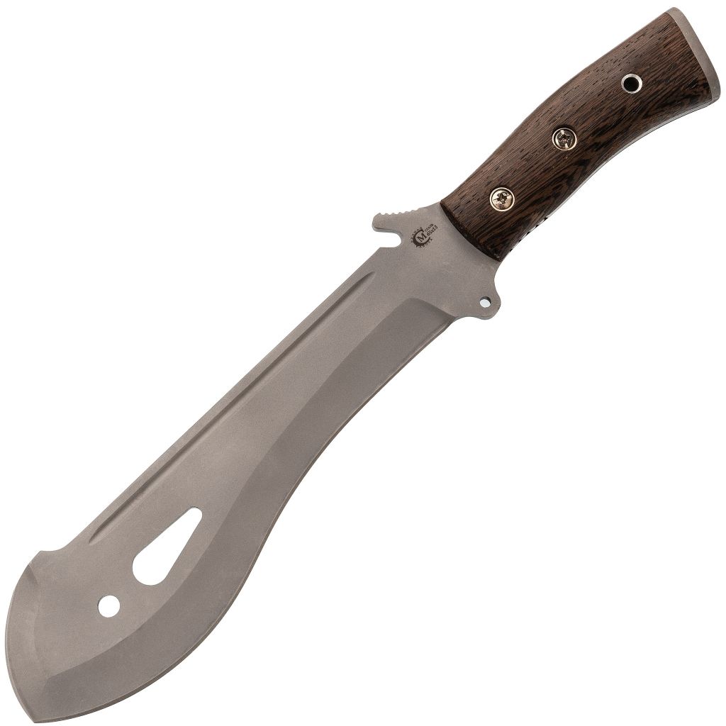 Рукоять из венге тщательно обработана и адаптирована под естественный хват. Анатомическая форма способствует безопасной работе даже во влажных условиях. Подпальцевой упор снижает риск соскальзывания руки, а предусмотренные отверстия позволяют установить темляк - как для страховки, так и для удобства при переноске.