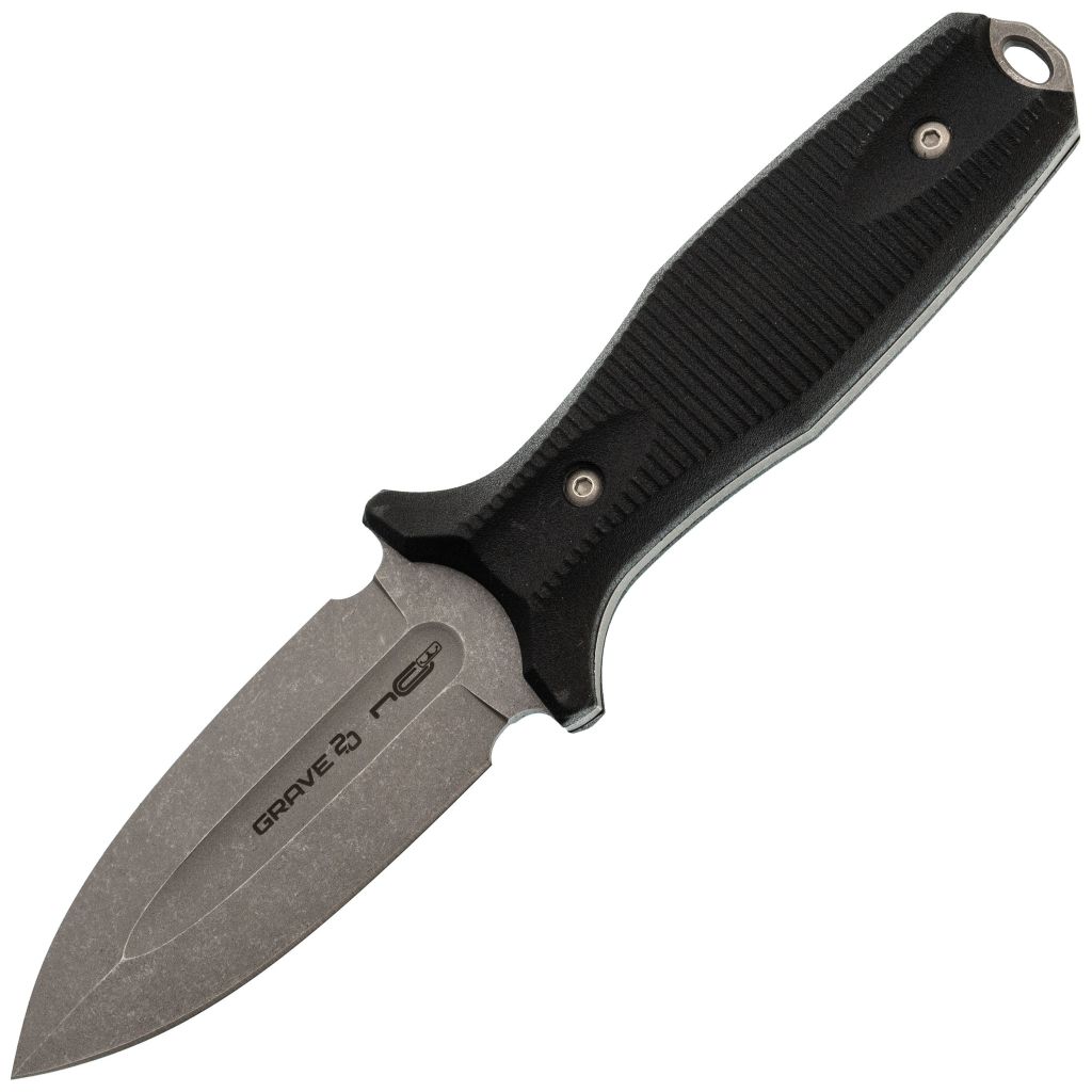Grave 2.0 это модификация обычного Grave - из ключевых изменений кинжальный стройный клинка, эластрон на рукояти, ножны из пластика и скруглённое навершие хвостовика. В данном исполнении ножа использована японская сталь AUS-8, которая отличается высокой устойчивостью к коррозии. Кроме того, эта сталь обладает высокой ударной вязкостью, что делает нож надежным инструментом для различных задач. Еще одним преимуществом AUS-8 является легкость заточки - даже начинающий пользователь сможет поддерживать клинок в отличном состоянии без особых усилий. В итоге получается функциональная и простая сталь, которая будет служить верой и правдой своему владельцу при любых условиях эксплуатации. Кинжальная форма клинка даёт ножу высокую проникающую способность, но при этом у него достаточно прочный кончик, что позволит выполнить ковырятельные работы.Рукоять ножа имеет очень удобную форму благодаря глубоким подпальцевым упорам с обеих сторон. Накладки из эластрона - прочного резиноподобного материала, не боящегося воздействия окружающей среды и поглощающего вибрации от ударов. Монтаж накладок на полный хвостовик обеспечивает высокую прочность и легкость обслуживания ножа. Эргономичная конструкция делает использование инструмента комфортным даже при продолжительной работе. Так же нож имеет продуманную деталь - с не заточенной стороны ножа на упоре есть насечка - это позволит в слепую определить, с какой стороны у ножа режущая кромка.Ножны выполнены из прочного пластика и комплектуются резинкой, обеспечивающей надежное крепление. Благодаря этому можно создавать уникальные подвесы для ножа, сочетая их с различными элементами декора или функциональными аксессуарами. Пластиковые ножны легкие и удобные в использовании, не скользят и хорошо защищают клинок от повреждений.