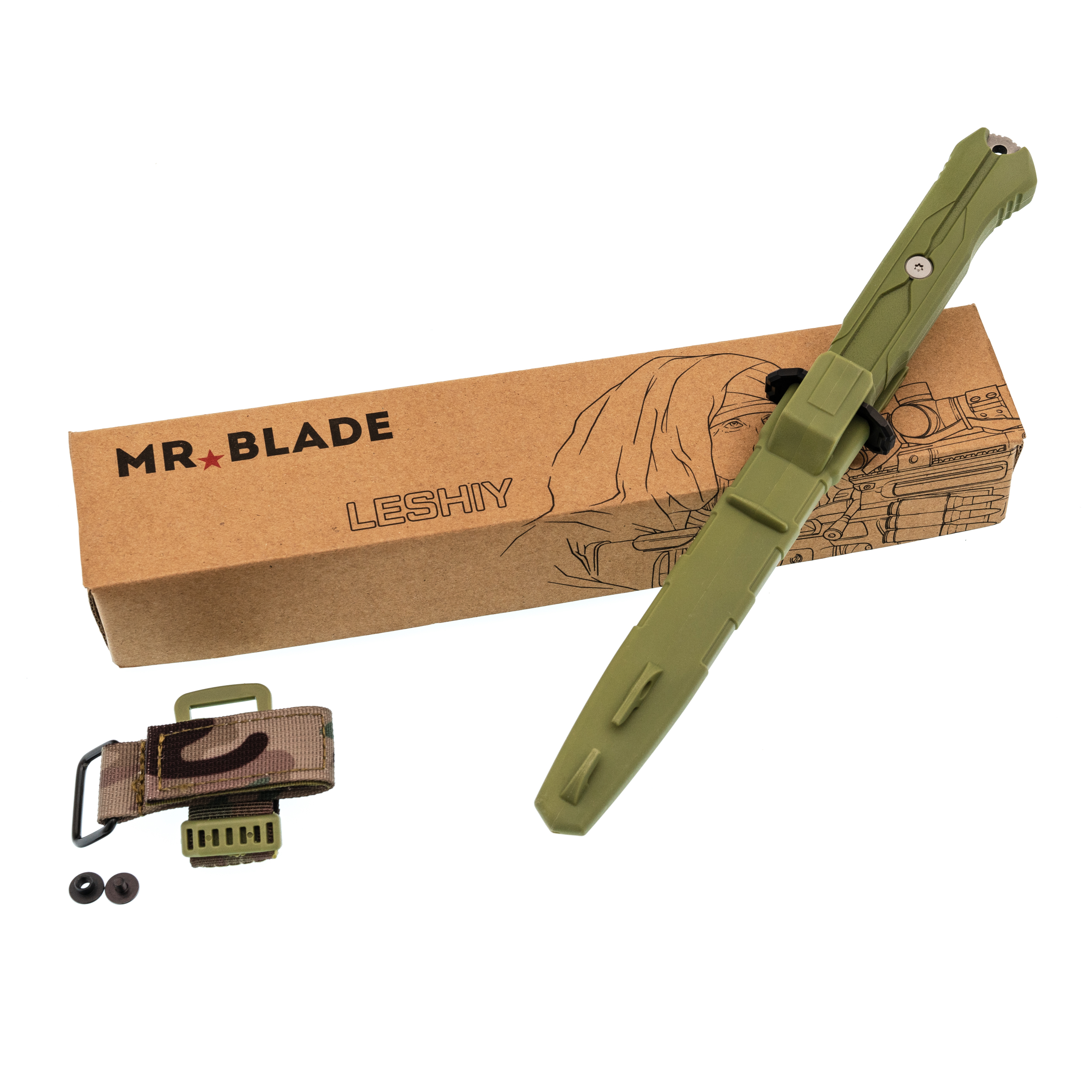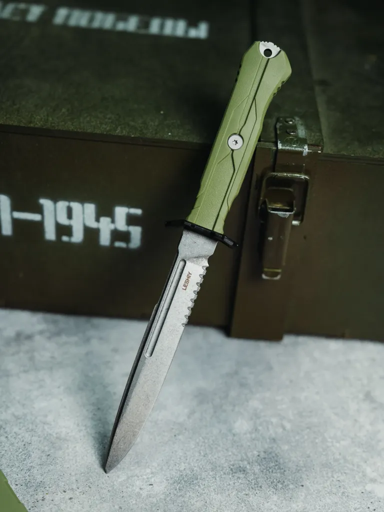 Тактический нож Mr.Blade Leshiy serrated stonewash, сталь AUS-8, рукоять OD Green Elastron Цельнометаллические Ножиков | V4.Ru: Маркетплейс