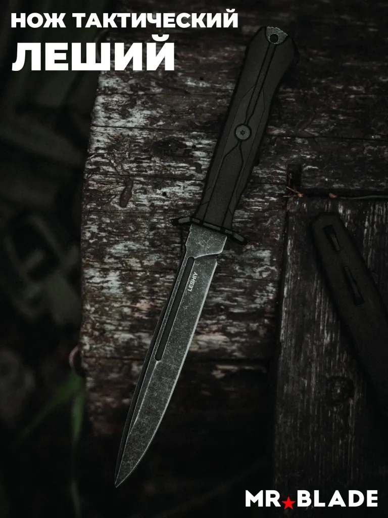 Тактический нож Mr.Blade Leshiy blackwash, сталь AUS-8, рукоять Black Elastron Цельнометаллические Ножиков | V4.Ru: Маркетплейс