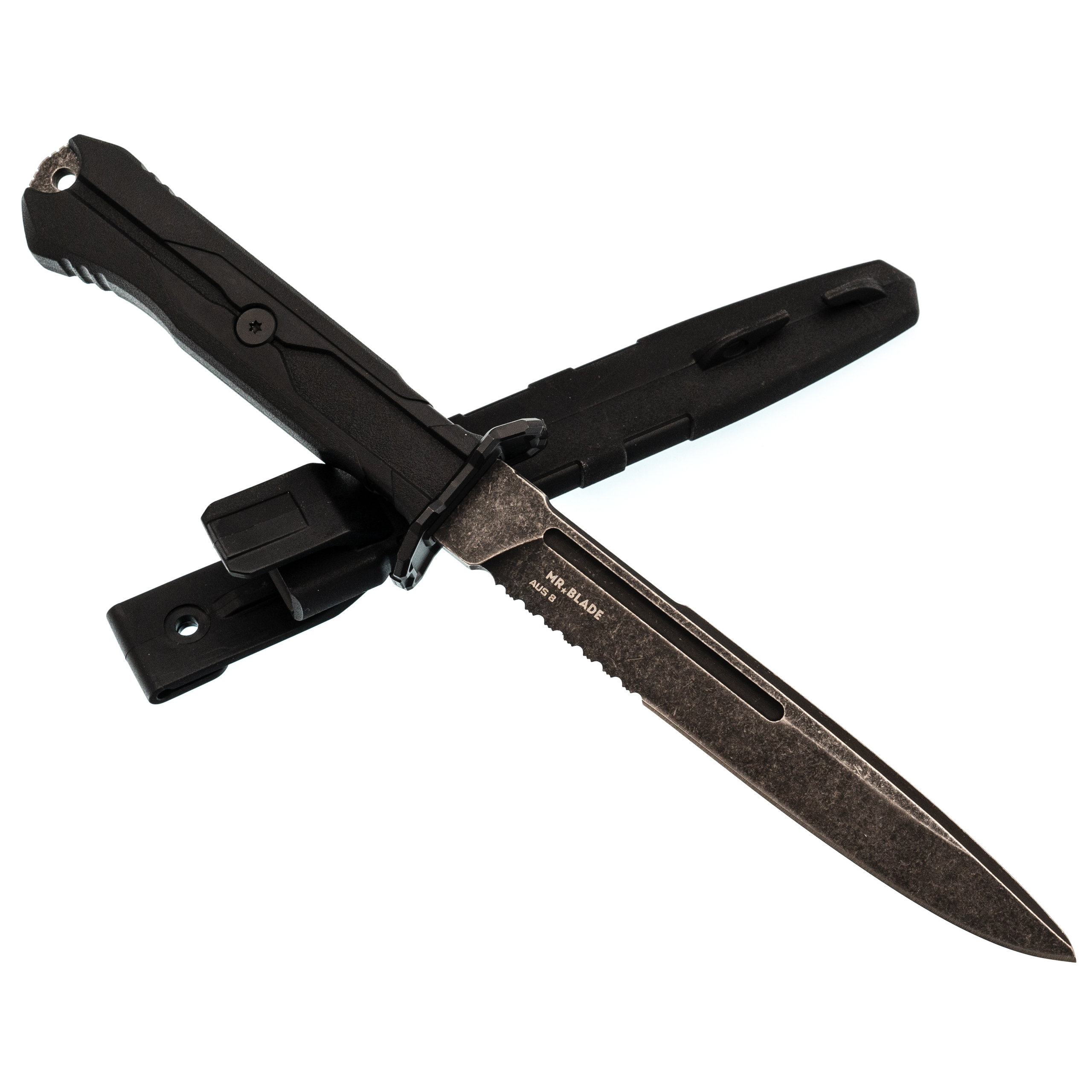 Тактический нож Mr.Blade Leshiy serrated blackwash, сталь AUS-8, рукоять Black Elastron Цельнометаллические Ножиков | V4.Ru: Маркетплейс