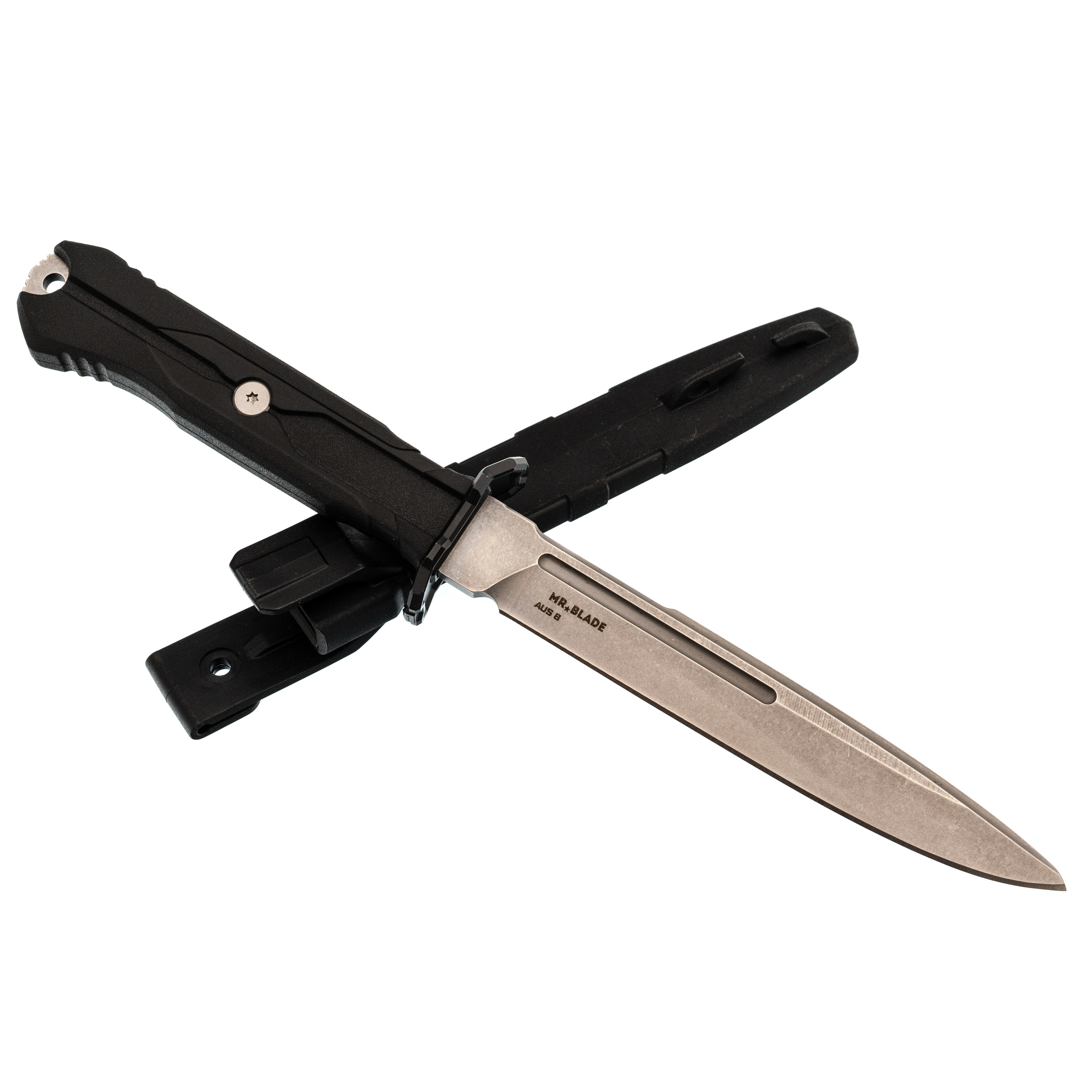 Тактический нож Mr.Blade Leshiy stonewash, сталь AUS-8, рукоять Black Elastron Цельнометаллические Ножиков | V4.Ru: Маркетплейс