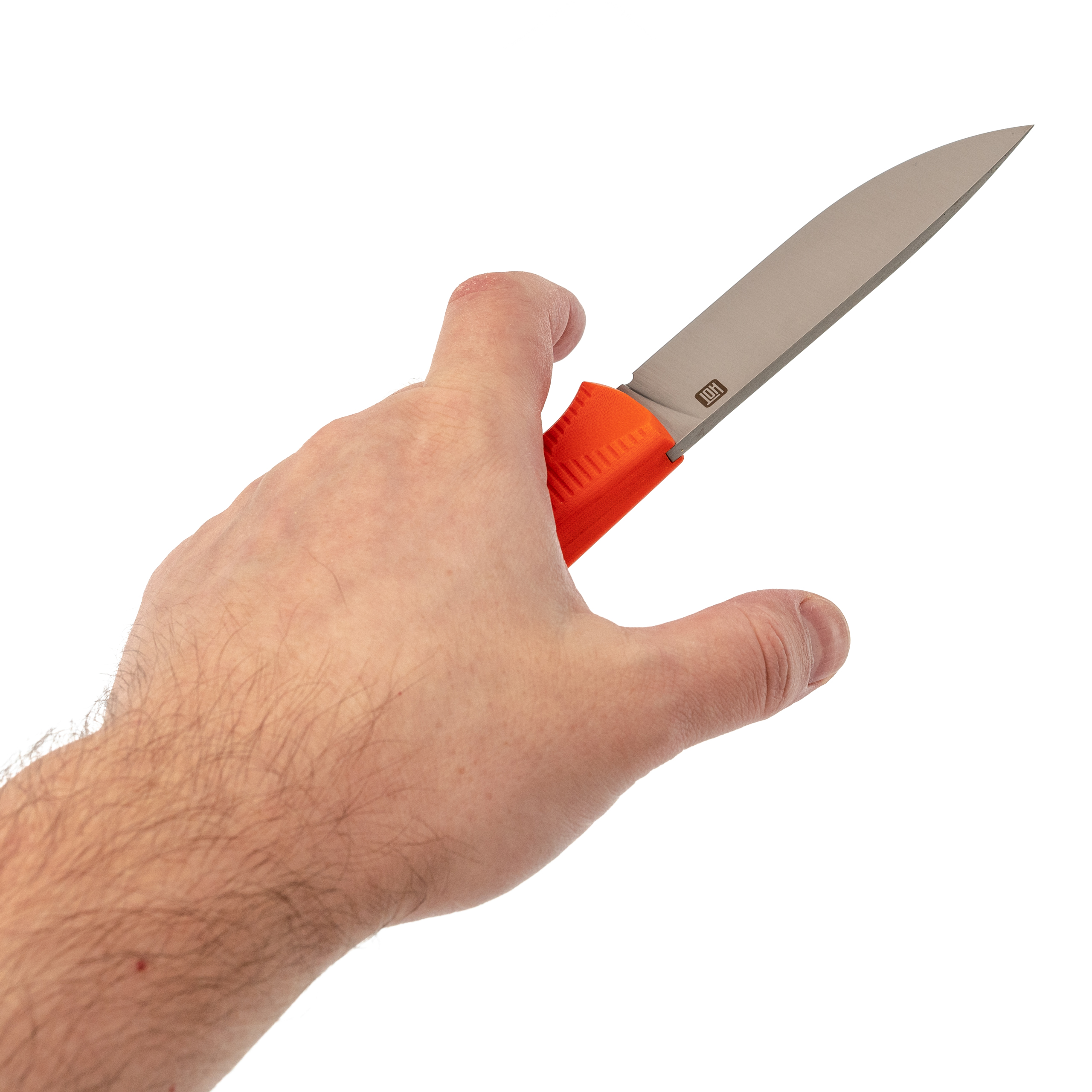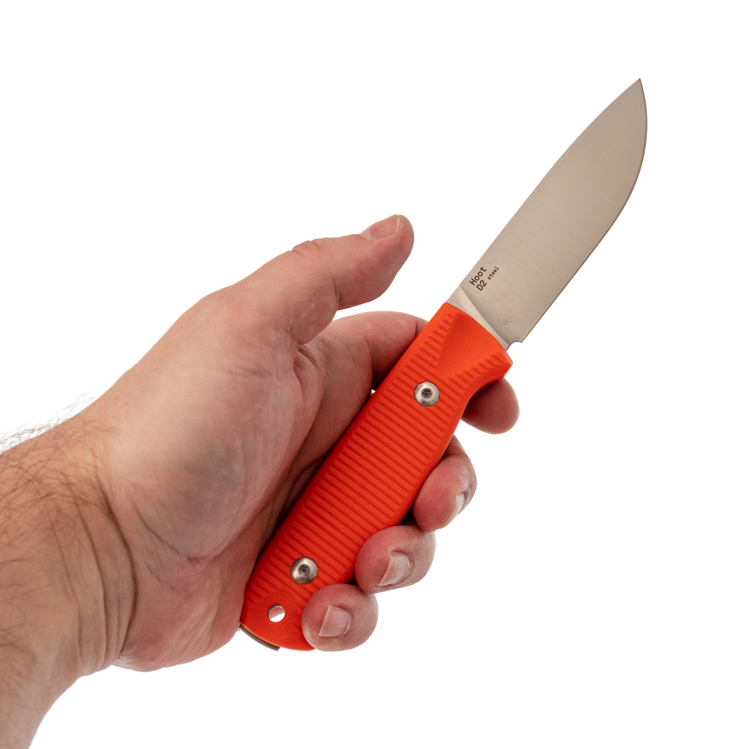 Форма рукояти продумана так, чтобы не навязывать хват. Она просто лежит в руке, и вы сами выбираете, как её взять. Отдельно стоит сказать про выемку у пяты - это фишка OWL Knife. В неё как раз попадает палец, когда нужно перехватить нож ближе к лезвию для точной работы. Рельеф на накладках неагрессивный, но цепкий. В мокрой руке или окровавленной перчатке нож сидит намертво.