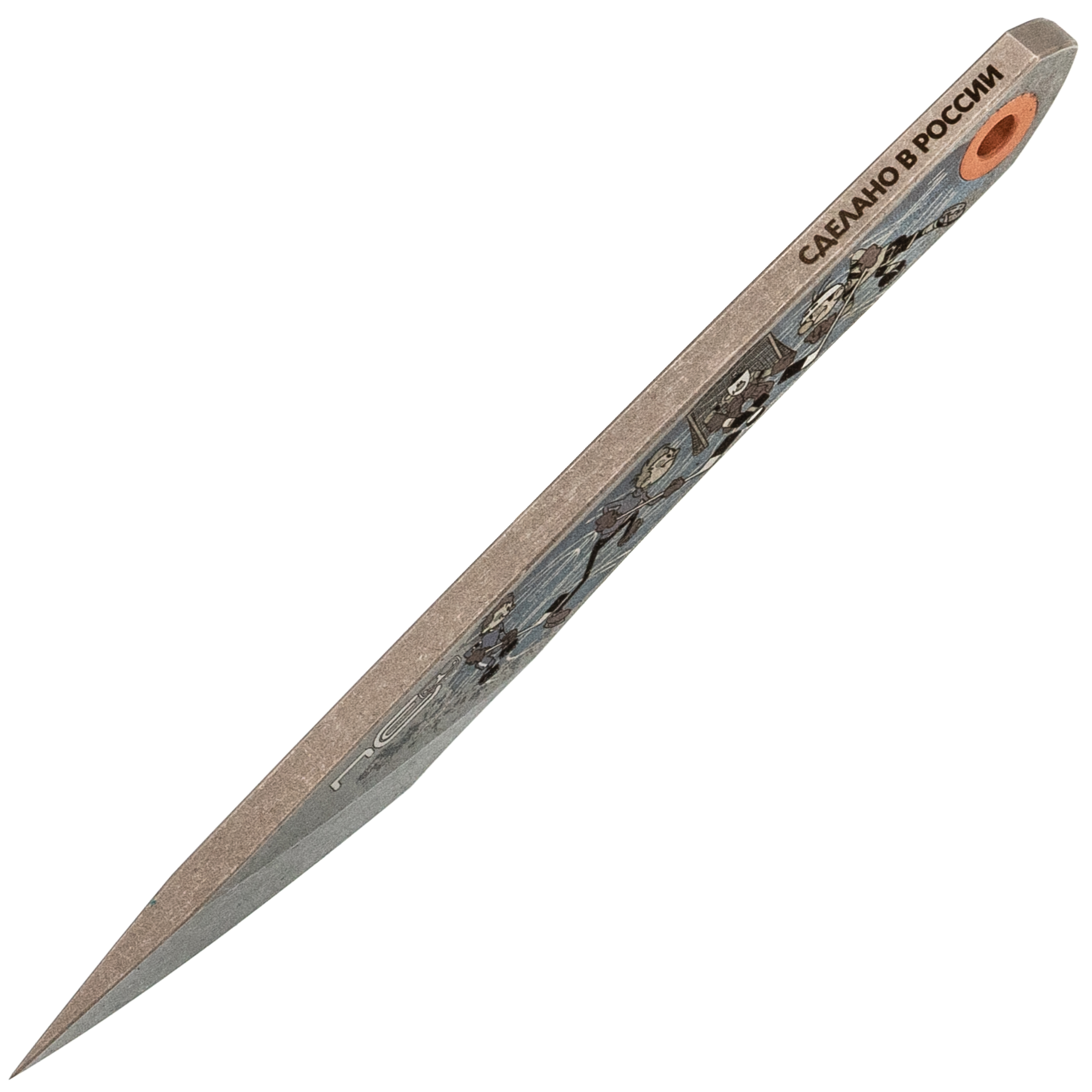 Скелетная рукоять без накладок делает нож лёгким и простым в уходе. Её легко промыть и привести в порядок. На поверхности размещена гравировка с командой "Вымпел" - аккуратная деталь, которая задаёт настроение всей модели.