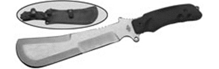 Форма рукояти рассчитана на работу в перчатках и без них. Упор под заднюю часть ладони не дает руке соскочить при обратном замахе, а эластрон гасит ту самую вибрацию, из-за которой после получаса рубки обычным мачете немеют пальцы. Поверхность без агрессивных насечек, но держит надежно.