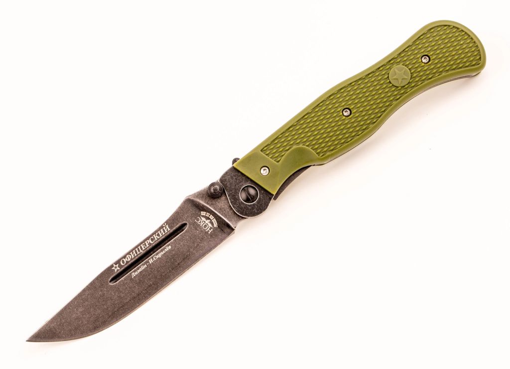 В этом исполнении НОЖ СКЛАДНОЙ ОФИЦЕРСКИЙ стал еще более стильным и брутальным. Нож получил новую сталь, которая позволяет более интенсивно использовать нож для различных тестов и сложных задач. Клинок выполнен из качественной нержавеющей стали японского производства. В названии стали используется цифровая маркировка - это означает, что в процессе плавки сталь проходит несколько уровней очистки. Это инструментальная сталь основное отличие которой заключается в отсутствии элемента ванадия. За счет этой особенности сталь хорошо держит острые углы заточки и легко доводится до бритвенной остроты. Важный момент составляет продуманная эргономика рукояти — нож уверенно фиксируется прямым и обратным хватом, что позволет точно дозироват усилие, передаваемое на клинок при выполнении деликтаной или силовой работы.