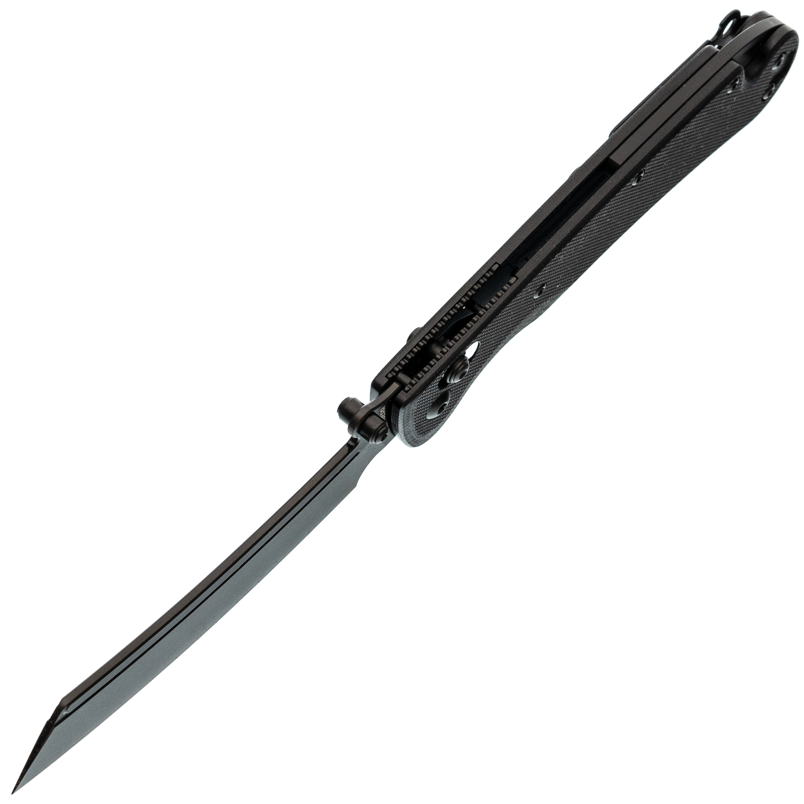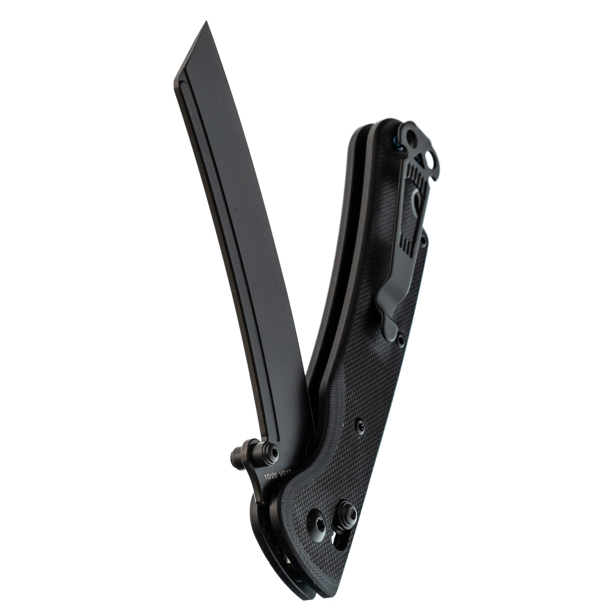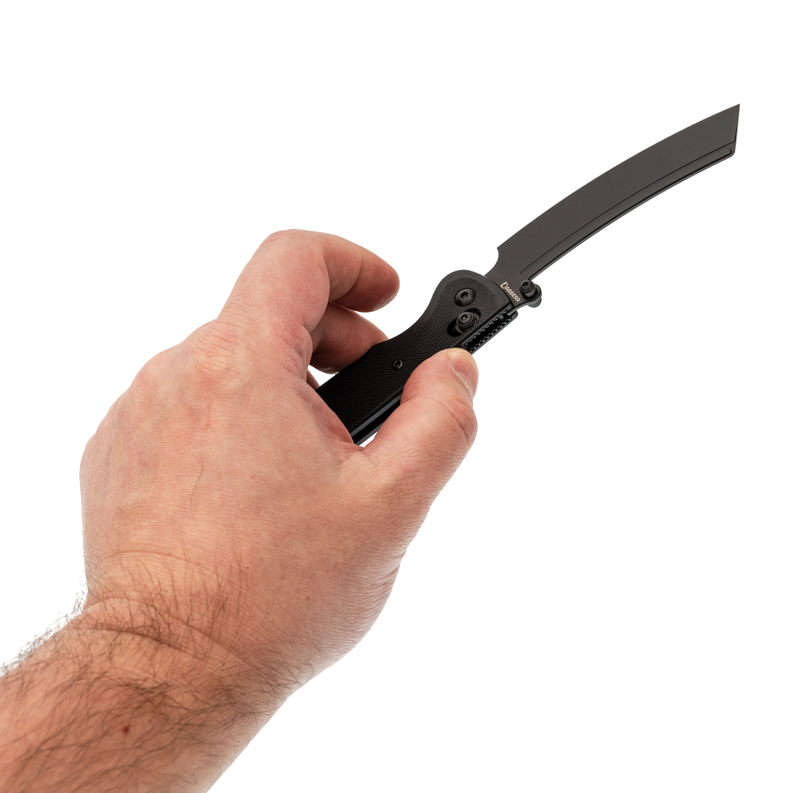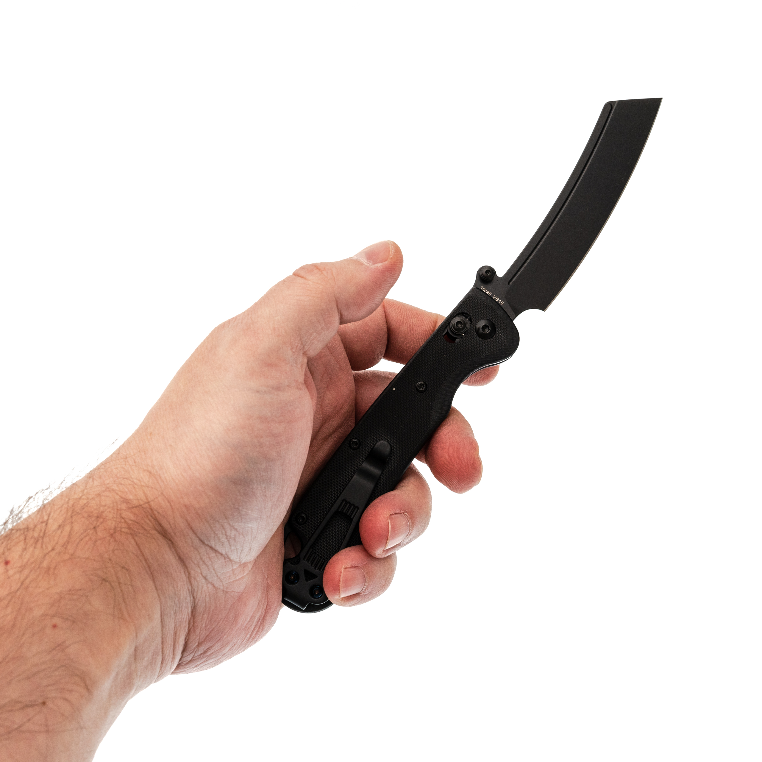 Тонкий обух и прямые спуски делают клинок очень резучим. Он легко проходит по материалу, не клинит и не требует давления. Геометрия между Cleaver и Reverse Tanto удачно сочетает контроль и универсальность. Кончик выраженный, удобно работать аккуратно.